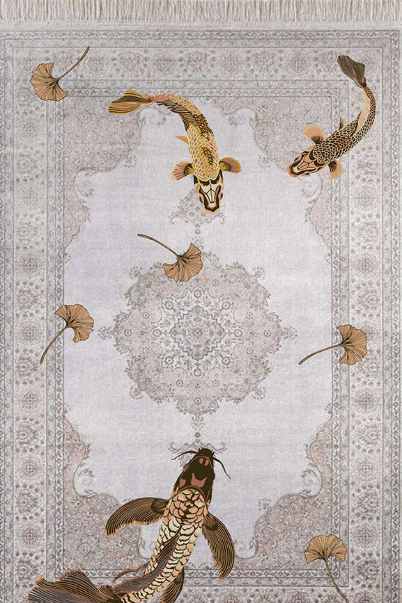 The koi carp is a symbol of perseverance, strength, and good luck in various Asian cultures, particularly in Japan. The use of viscose creates a luxuriously soft and shiny feel.Coil 32