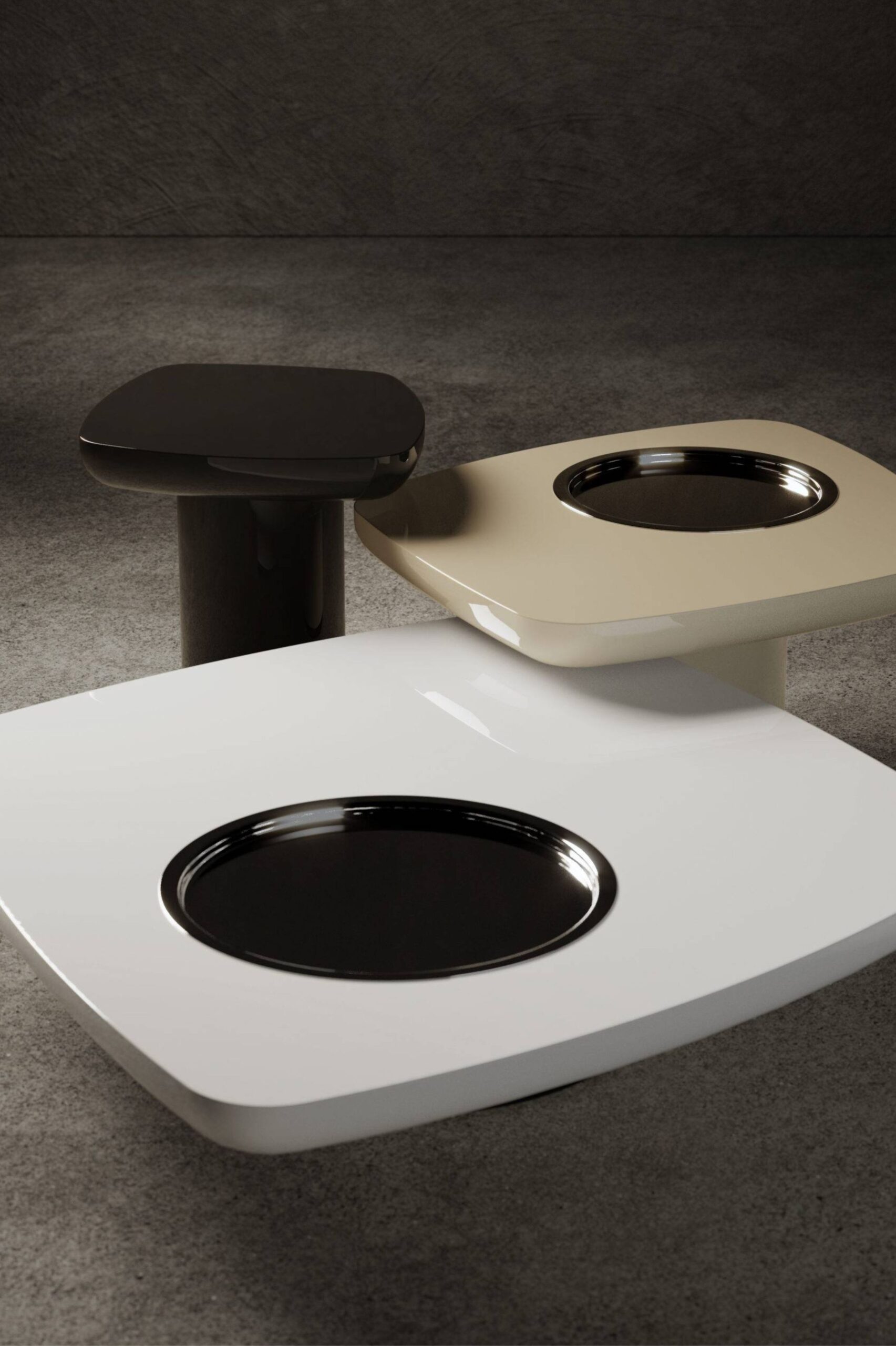 The Asolo table series explores the exceptional resistance quality of stone material, utilized here as the sole material.