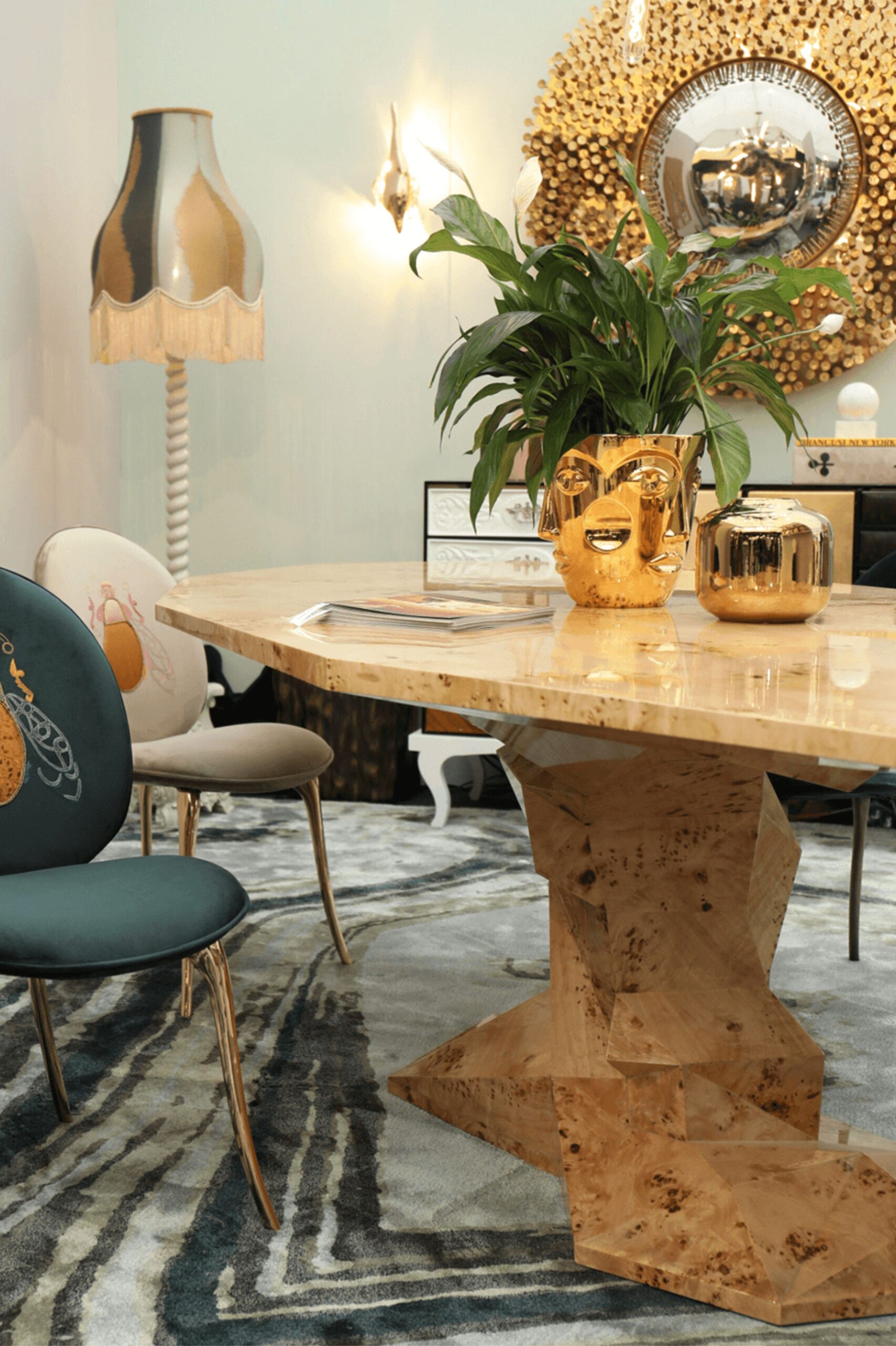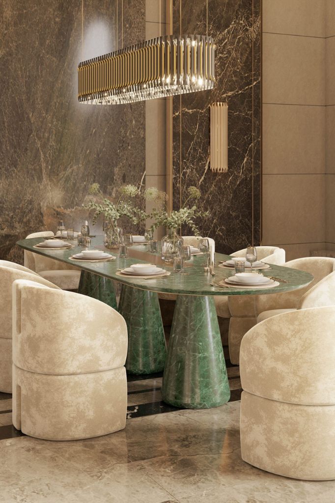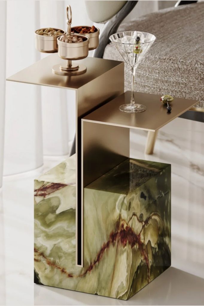 The Bronze dining table, a beautiful mix of marble and brass. This table, designed by Alessandro Serafini, combines marble and metal in a way that will elevate your space.budino