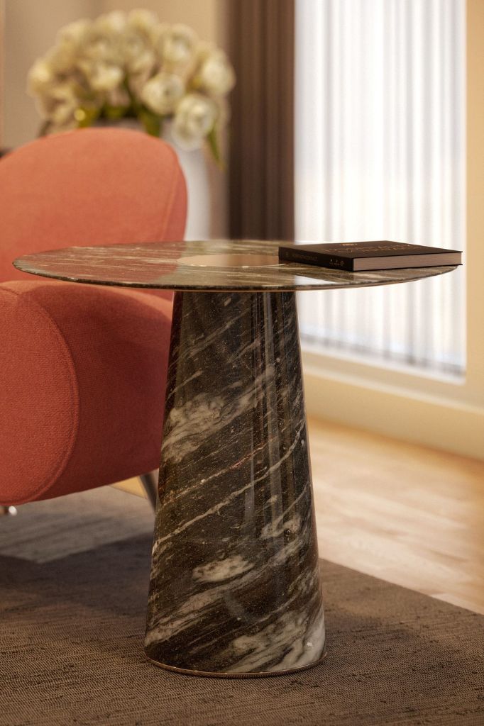 Arthur marble coffee table is created from a single piece leveraging 2 opposite materials, finding a balance in their patinas and visual contrast.ARTS AND CRAFTS – CATARINA RICCABONA