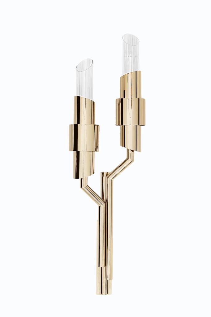 Suited for art galleries and displays, the Waterfall Technical Wall Lamp will create a spotlight with its simple yet timeless design. This elegant wall light, made of gold-plated brass and crystal glass, will emphasize your favorite artwork.EMPIRE II WALL LAMP