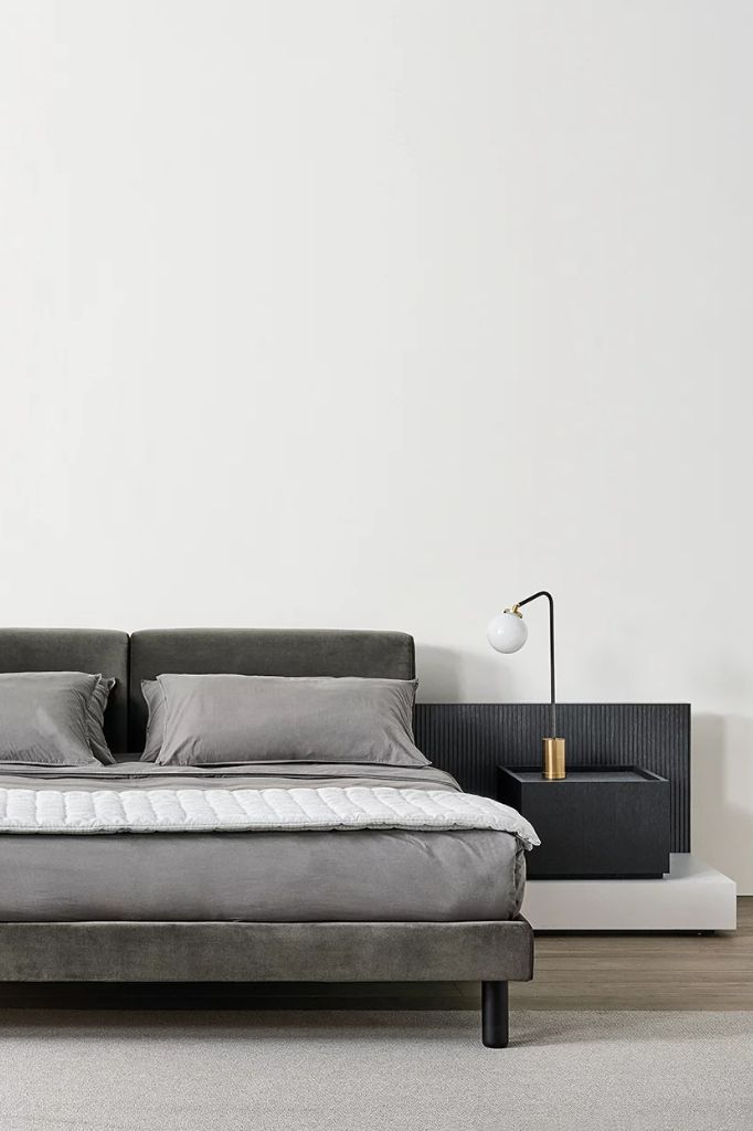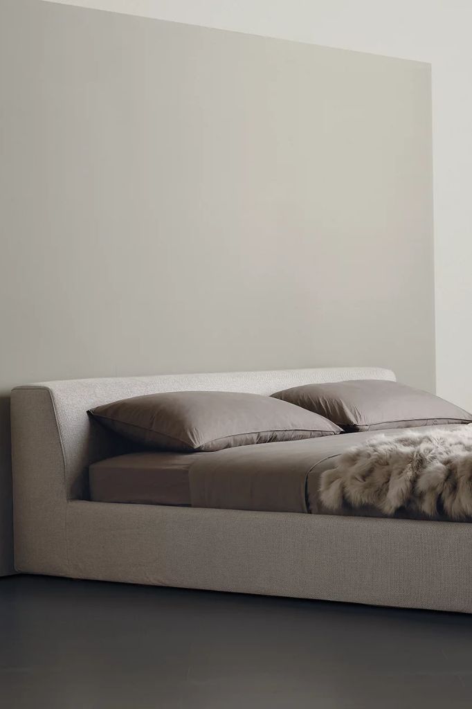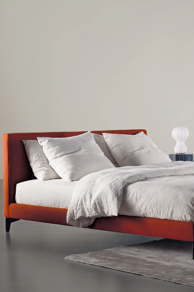 Tapicerowane łóżko, którego surowy i wyrafinowany design jest podkreślony przez detal, który natychmiast przyciąga wzrok: lekkie, metalowe nóżki.KIRA