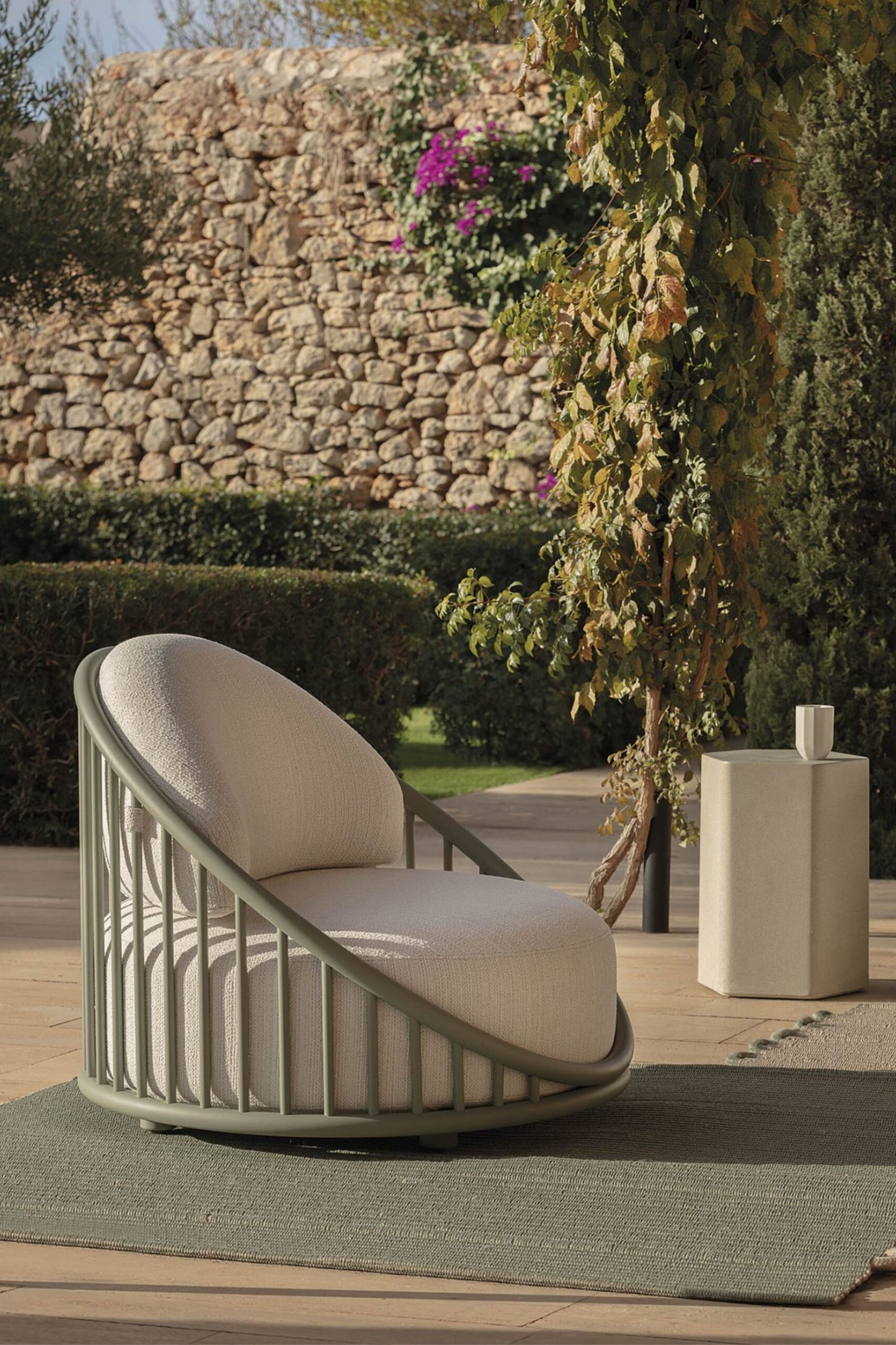 The Cask collection, launched in 2021 as an indoor collection, is moving outdoors. The same impeccable classicism, the same simple elegance, the same exquisite details. Now in your patio, terrace or swimming pool.Céline Armchair