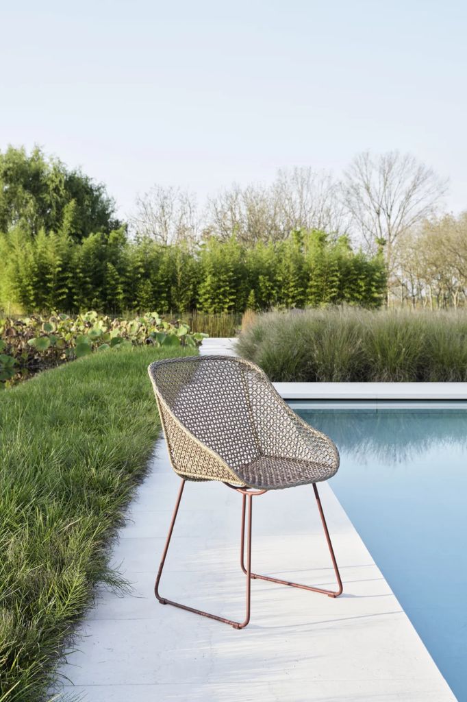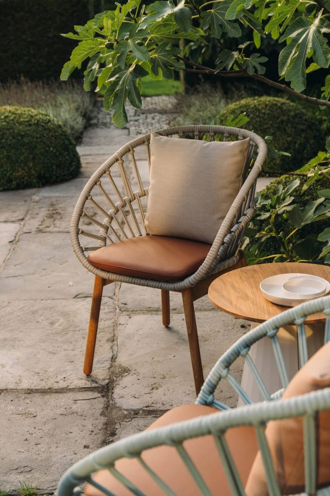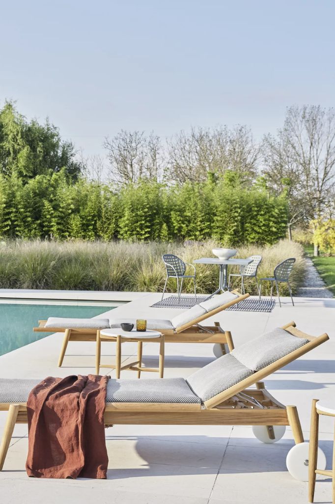 Designer garden furniture characterized by timeless aesthetics.