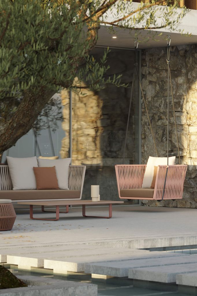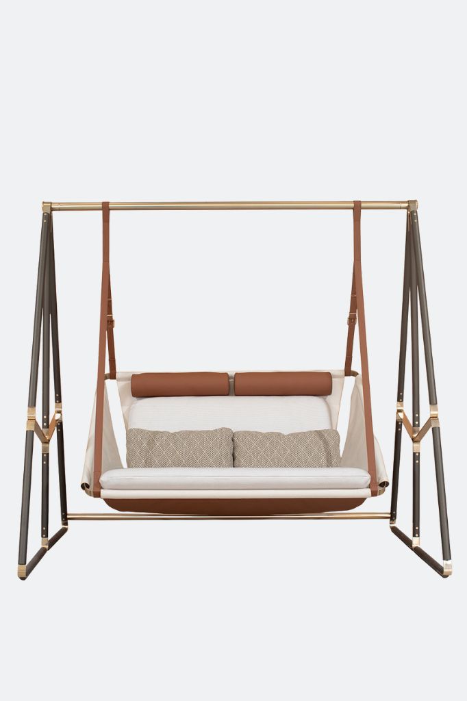 The Allure two-seater swing embodies the essence of the brand. Each material has been carefully selected to emphasize its uniqueness.Altar