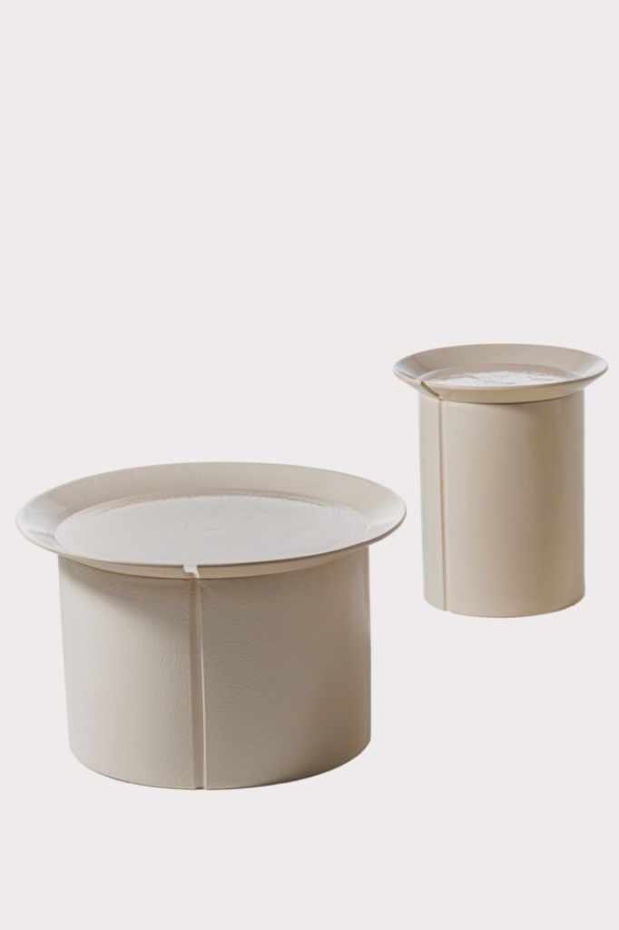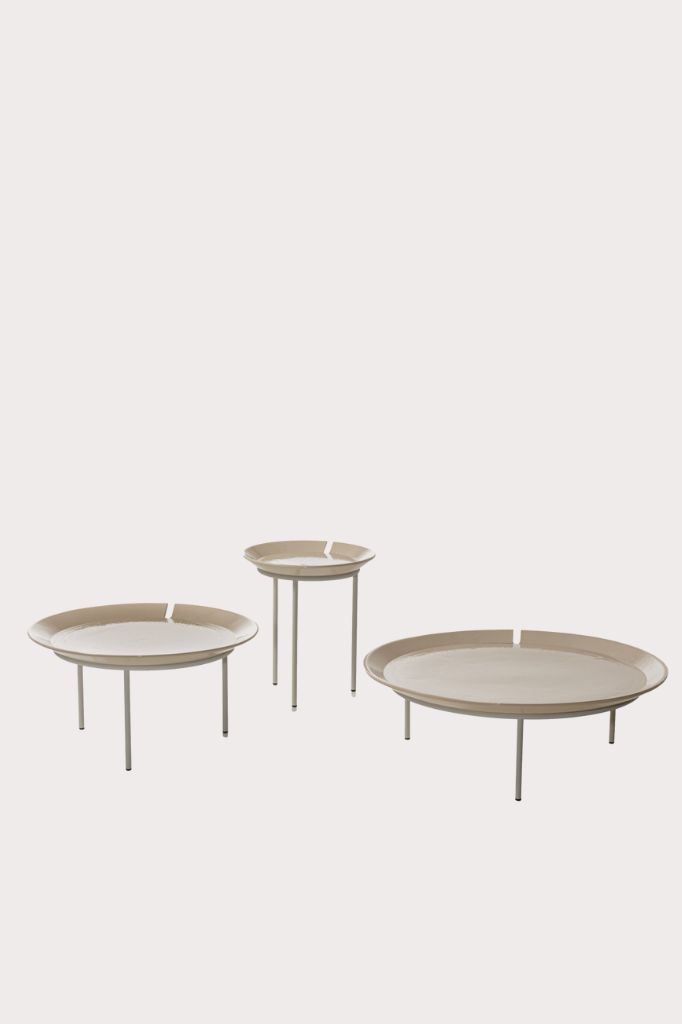 The collection is made up of round tables with stainless steel. Portable tops in Millgres available in various sizes and heights and in a palette of dynamic colours, where in addition to red and cream, there is also blue.