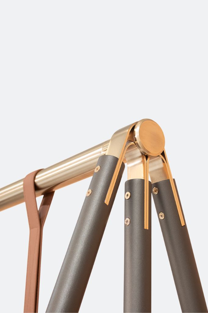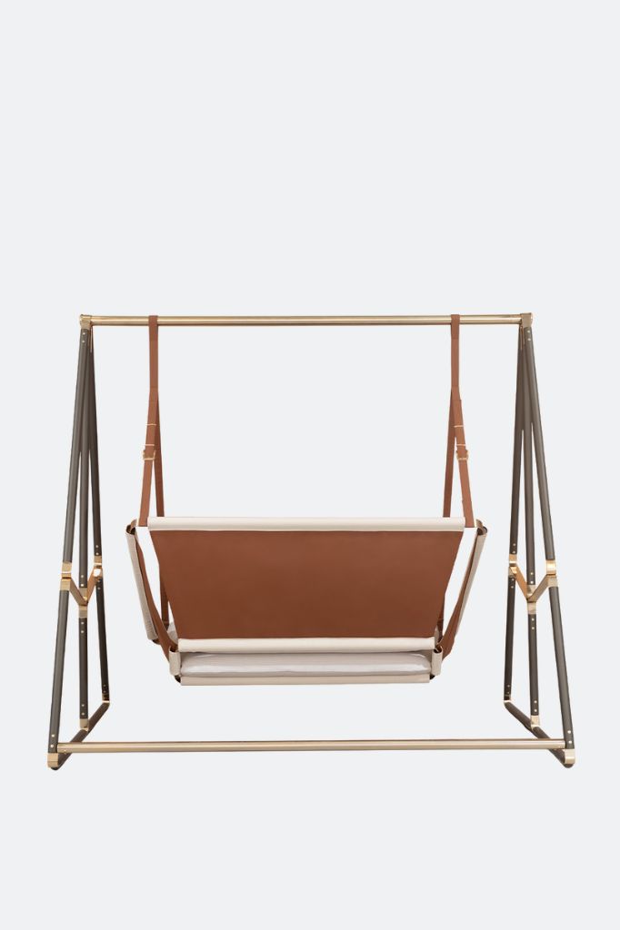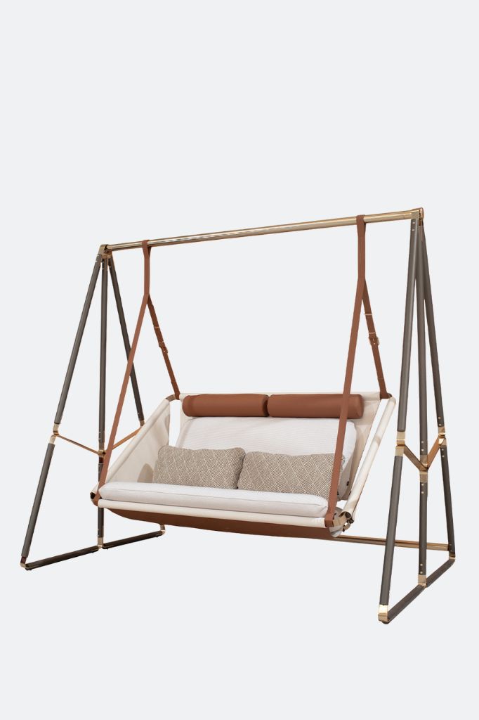 The Allure two-seater swing embodies the essence of the brand. Each material has been carefully selected to emphasize its uniqueness. Stainless steel clamps and outdoor-grade leather details give it a unique sophistication. With its distinctive design and high-quality finish, it is a durable product that offers comfort and a modern look.