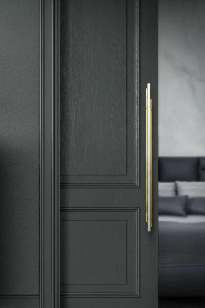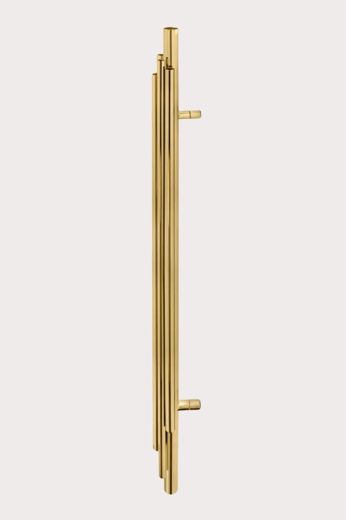 Brubeck Door Hardware is composed of asymmetrical Polished Brass tubes, creating an artistic series of furniture and Door Handles.