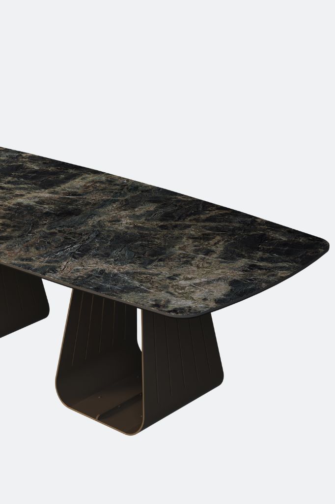 The Moon dining table is a bold piece designed to transform any outdoor dining space. With elegant lines and an oval marble top, it evokes the serenity of the Moon, while metallic details and a robust base ensure durability and authenticity.Orizon Retangular Dining Table