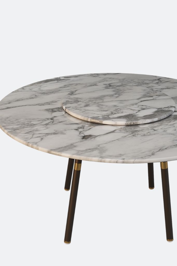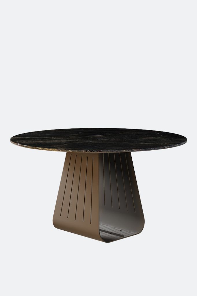 The Kai outdoor coffee table combines design with light and wavy shapes, using materials such as marble and stainless steel with premium finishes, making it visually appealing.Orizon Round Dining Table