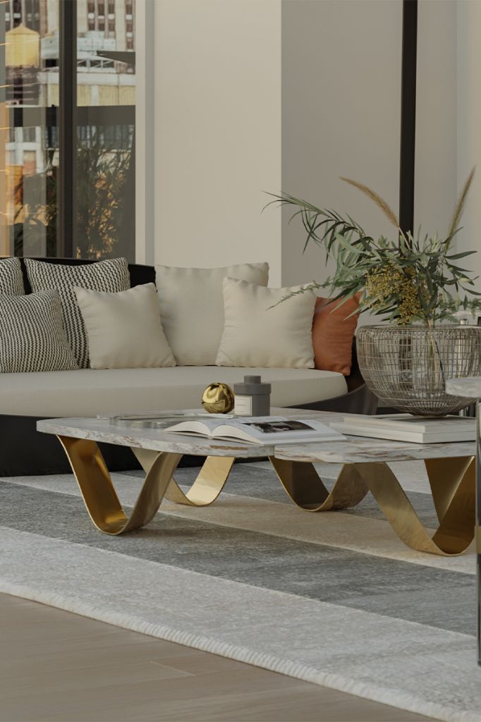 The Hound table is a complementary piece that emphasizes the elegance and charm of the collection—made of high-quality marble and stainless steel.Zaya Coffee Table