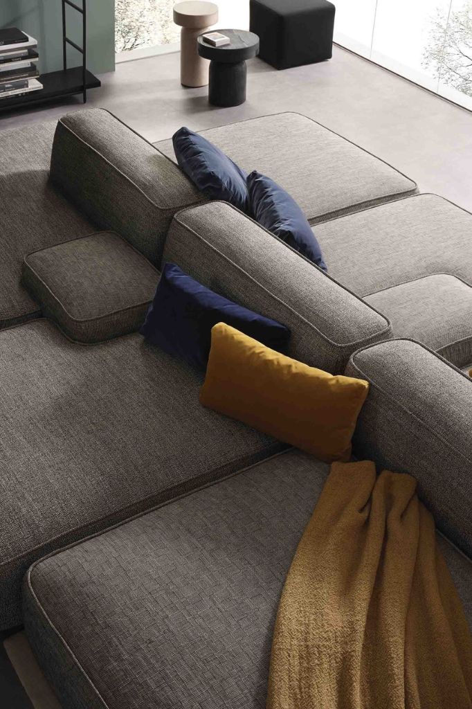 Modułowa sofa Cloud została zaprojektowana jako zbiór swobodnych elementów, które można łączyć zgodnie z indywidualnymi upodobaniami, tworząc oryginalne rozwiązania odpowiednie zarówno do domowych salonów, jak i dużych przestrzeni biznesowych. Istnieje nieskończona liczba możliwości kompozycyjnych, wszystkie charakteryzujące się zabawnymi liniami, zapewnionymi przez 18 sekcji i trzy rodzaje podłokietników o różnych wymiarach, kształtach i wysokościach. Sekcja środkowa może służyć jako element końcowy i odwrotnie, lub można ją rozdzielić, aby służyła jako pufa. Natomiast oparcie może służyć jako sekcja boczna lub separator między dwoma siedziskami, a sam podłokietnik może służyć jako małe siedzisko lub stolik boczny. Dostępne są również różne kombinacje kolorów, materiałów i faktur.