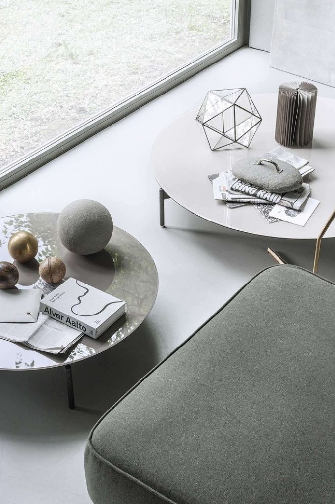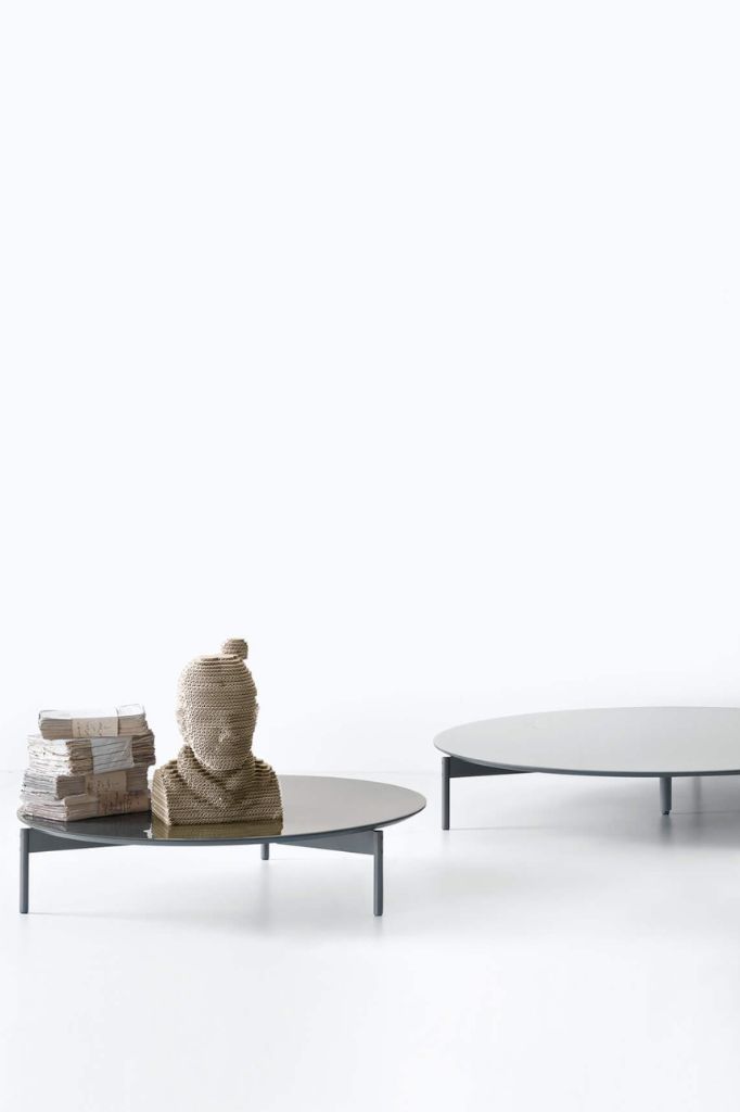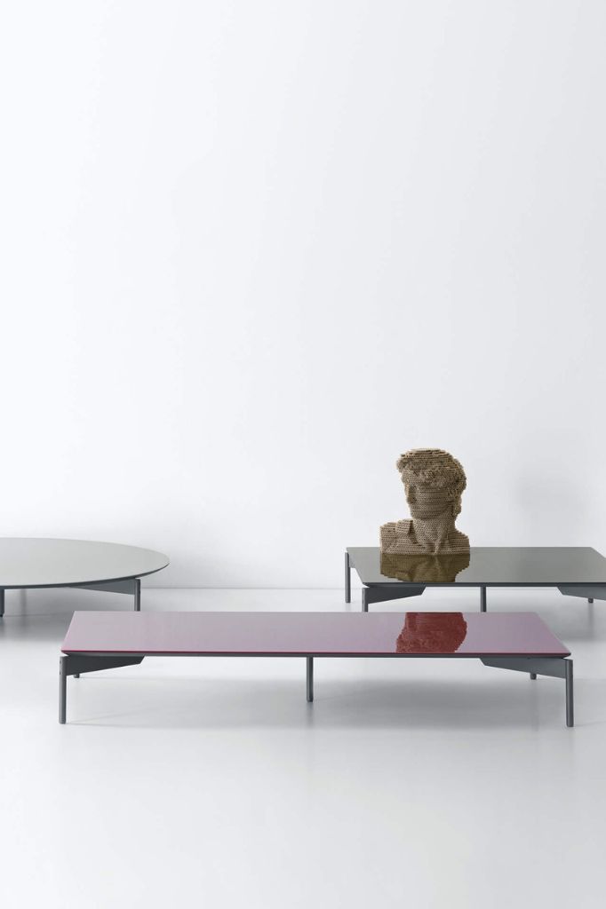 The timeless simplicity of the most basic shapes – circles and squares – is celebrated here thanks to a marriage with Lema’s sophisticated materials and production techniques. The Cruise coffee tables feature metal bases supporting the tops, upon which a sheet of glass rests, belying a playful conceptual approach and breaking up the visual impact of the pieces. Each top features grinding around the edge which creates a 1mm profile, combining a hi-tech technique with true craft.