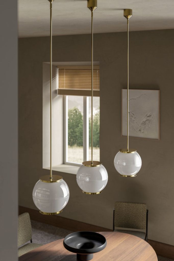 This is Ignazio Gardella’s most recognizable industrial design product. The conformation of its prismatic glass allows a soft diffusion of the light, bringing poetry back.