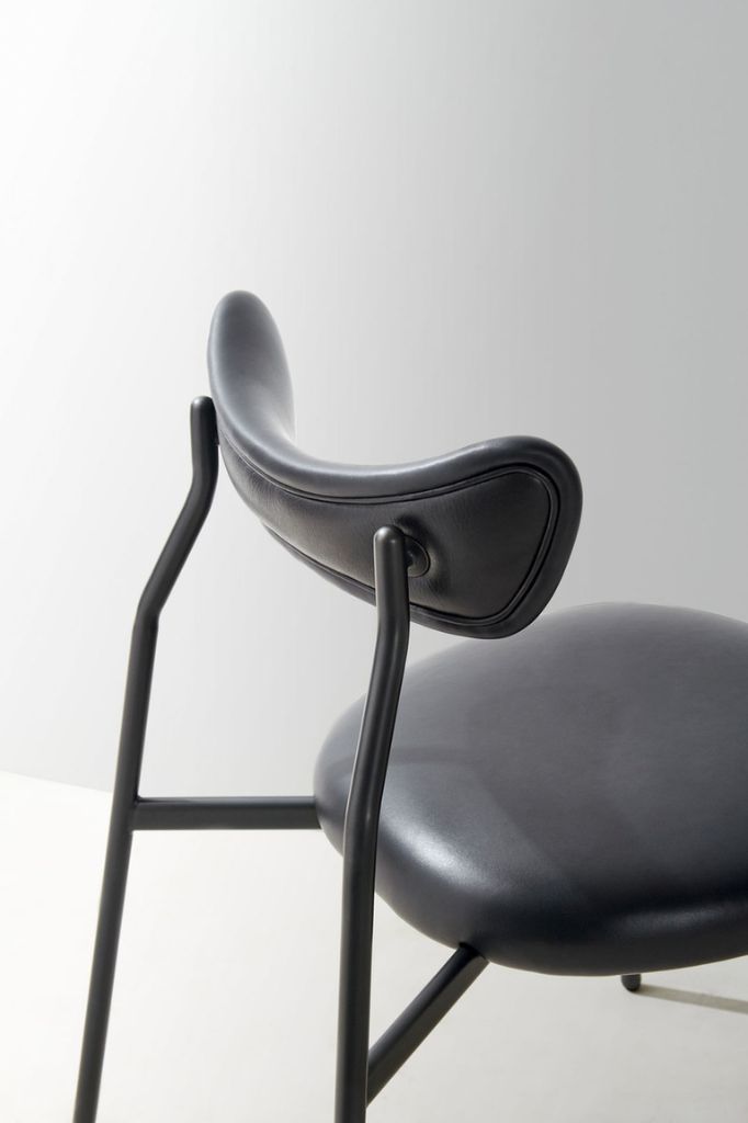 Fotel Dragonfly Lounge Chair inspirowany jest kształtem głowy i skrzydeł ważki. Charakterystyczna, cienka stalowa rama i otaczające oparcie zbudowane z czarnych stalowych rur, siedzisko tapicerowane skórą lub tkaniną.