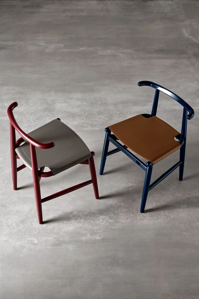 Emilia to krzesło o jednocześnie zdefiniowanym, ale przy tym lekkim w wizualnym odbiorze charakterze. Doskonale wyważone proporcje oraz połączenie litego drewna ze skórą siodłową zachwycają tworząc oryginalny projekt.