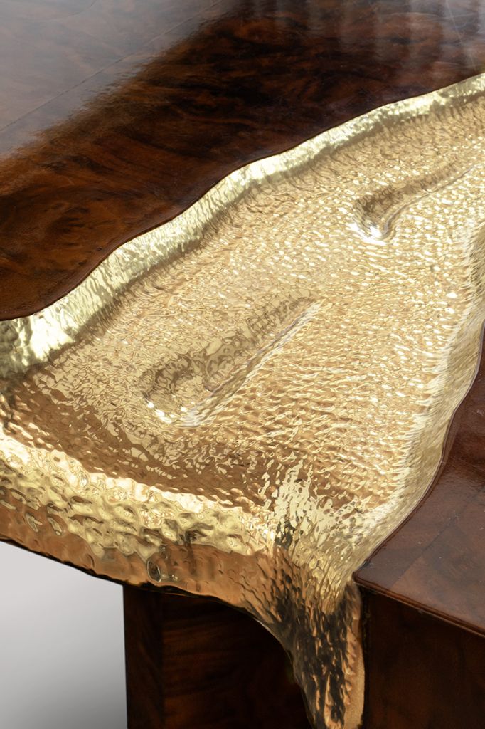 Stół Empire to hołd dla pokoleniowych spotkań i podejmowanych decyzji – zarówno tych radosnych, jak i tych trudnych. Jego pęknięcia symbolizują trudne chwile, a złote wnętrze to manifest siły z nich płynących. Nieskazitelna i jasna powierzchnia wskazuje na świetlaną przyszłość, przypominając o tym, żeby wznieść toast za pomyślność.