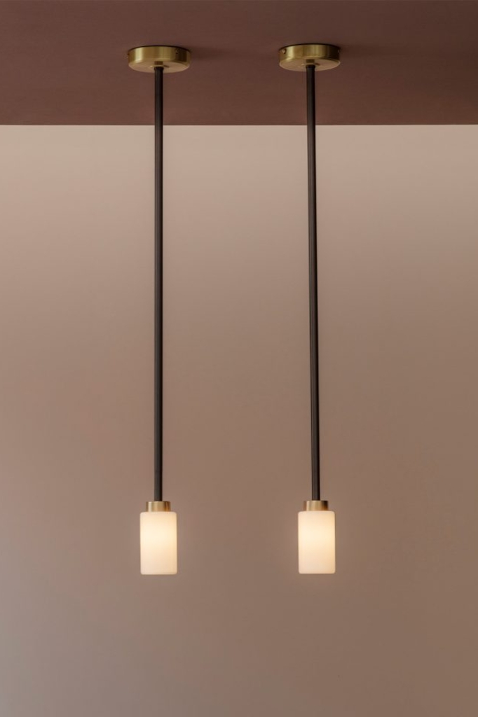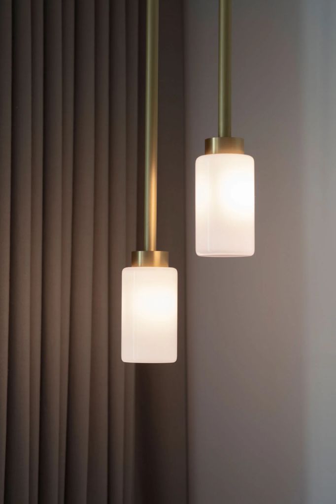 Prosty, cylindryczny szklany klosz zawieszony na drążku z pojedynczym mosiężnym akcentem. Stonowana, dyskretna i niezaprzeczalnie wyrafinowana.
