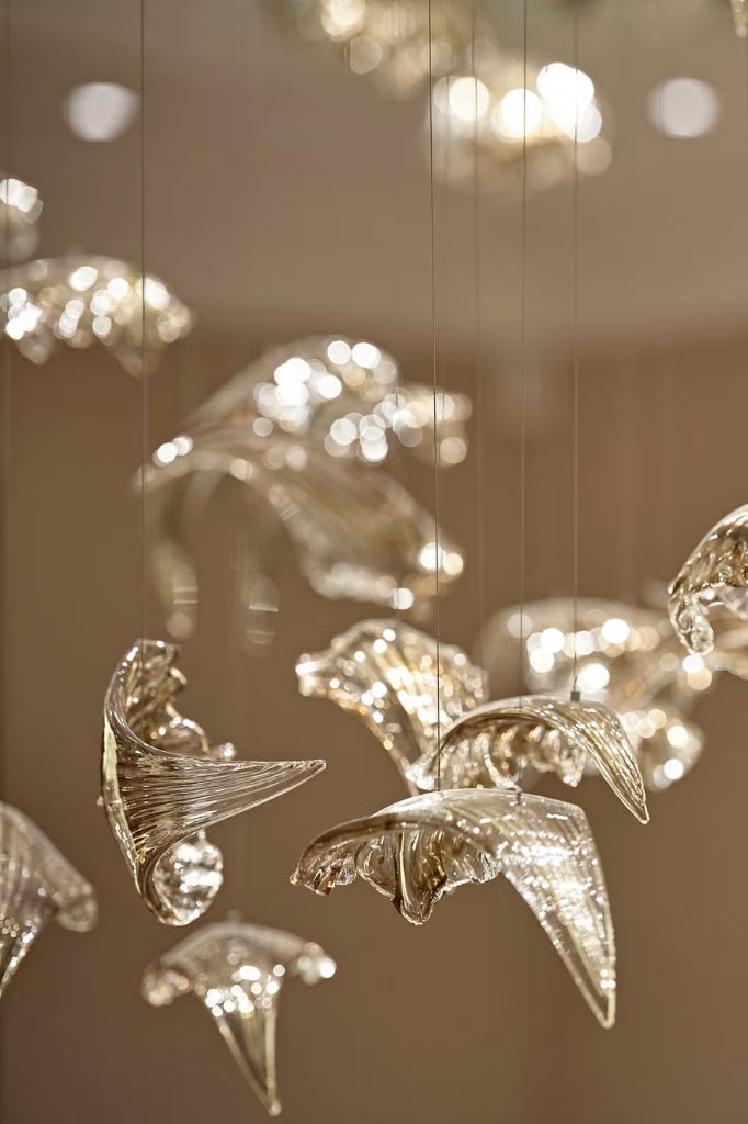 The Flamenco collection, a series of organic, mouth-blown, and hand-formed crystal pieces with a smoky ombre effect.