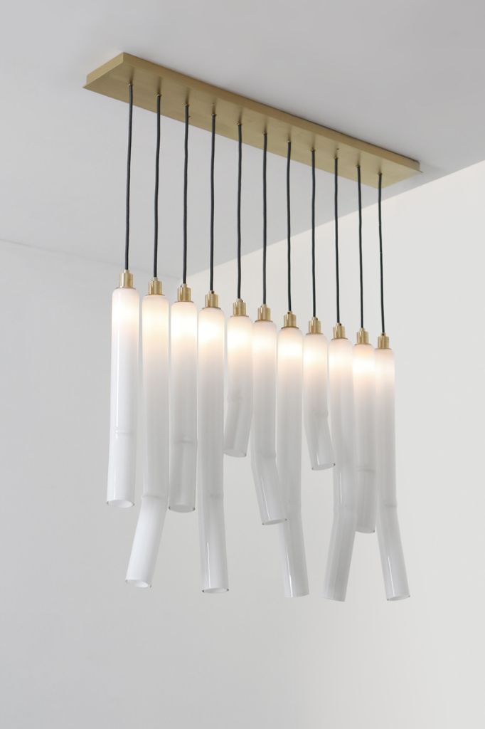 Duża, geometryczna oprawa oświetleniowa z długim rzędem szklanych pętli wspartych na stalowej konstrukcji. Każda z nich jest wykonywana ręcznie, więc każda jest wyjątkowa i nieco inna, nadając gotowej kompozycji bardzo organiczny charakter.Sea
