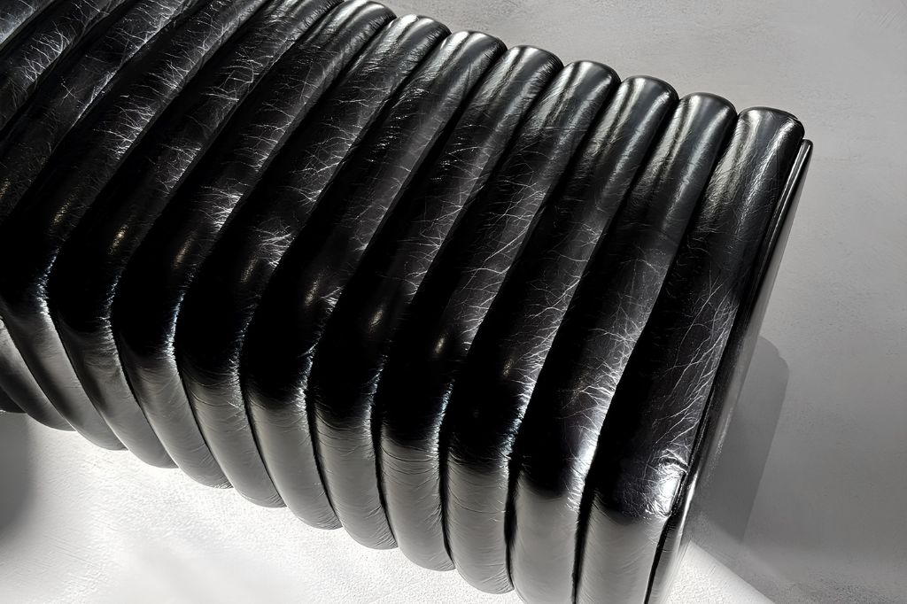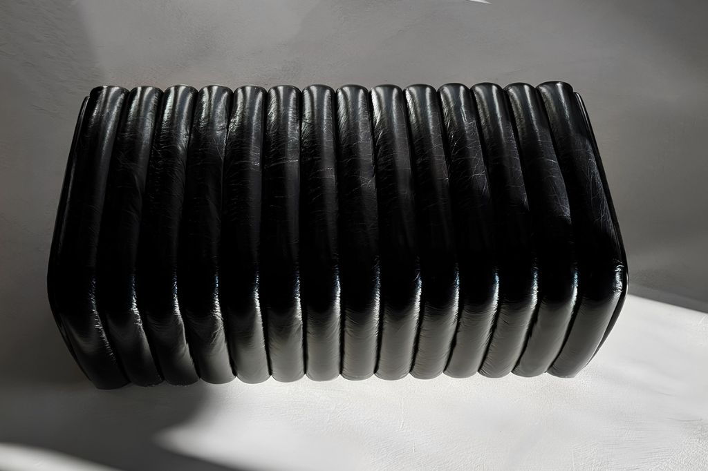 The Petit Arrêt bench is an exceptional piece of furniture that combines functionality with modern design. The seat features an elegant, vertically quilted finish, which adds character to the piece and catches the eye. The Petit Arrêt model is upholstered in glossy, black aniline leather, which has been vegetable-tanned, ensuring not only an aesthetic appearance but also durability for many years.
