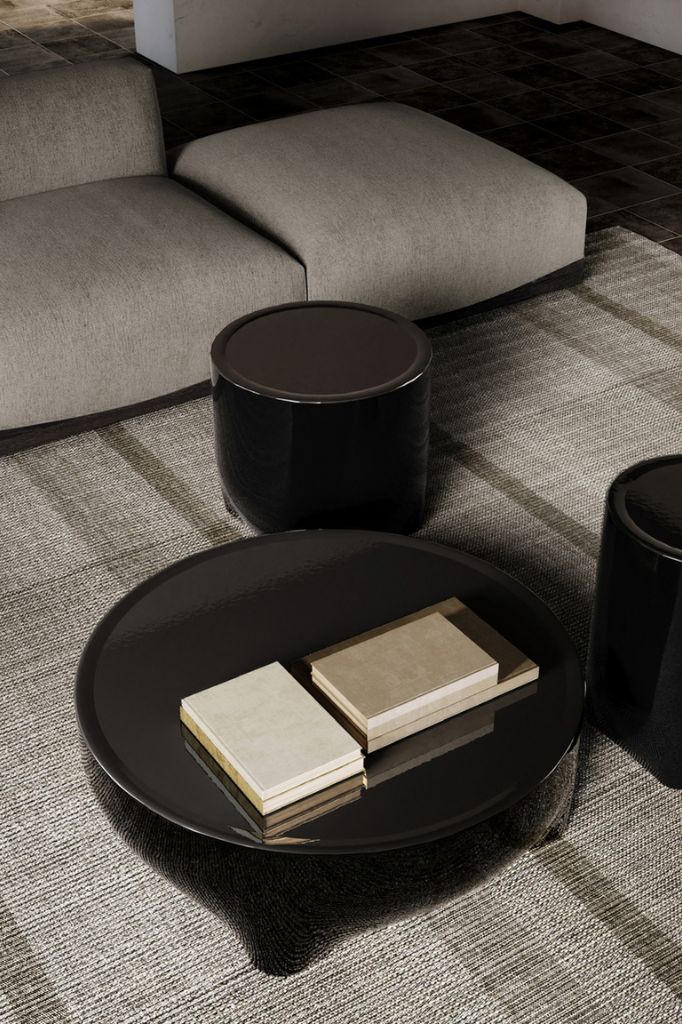 Lakierowane wykończenie kolekcji nawiązuje do wschodnioazjatyckiego kunsztu. Każdy stół, dostępny w trzech rozmiarach, odzwierciedla kształt Gùi – okrągły blat symbolizuje niebo, a kwadratowa podstawa ziemię.