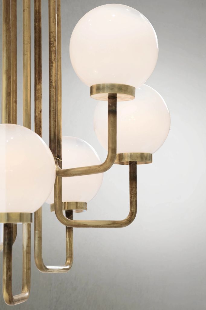 At the creative heart of Giopagani, art takes shape through the magical fusion of two materials: Murano glass, which is transformed into beautiful luminescent boules, and natural brass, modeled into branches to hold them up.