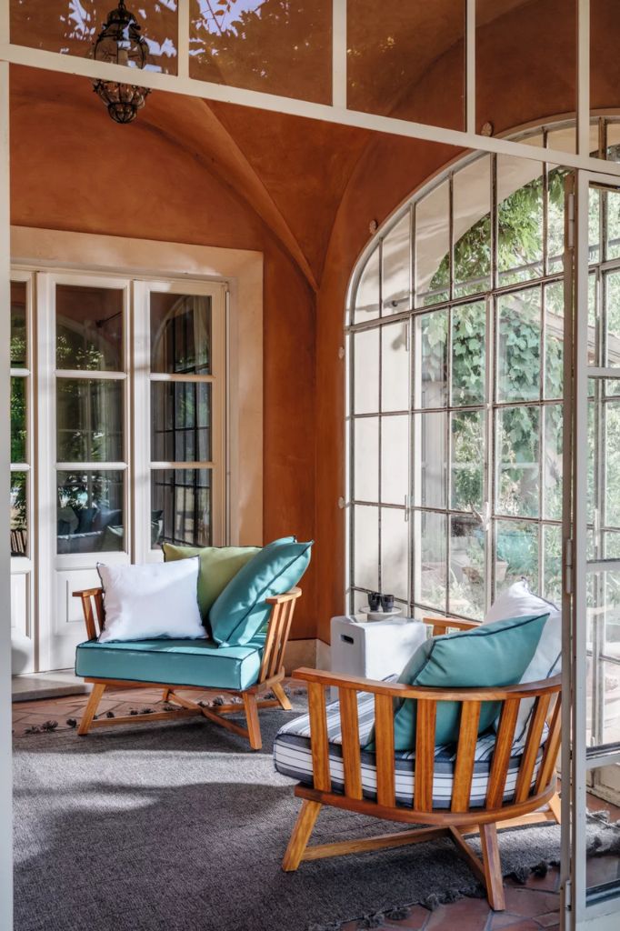 The Inout armchair is made of oiled iroko wood, which is exceptionally durable thanks to its natural resistance to water and moisture. The contrast between the solidity of the wide slats and the softness of the removable cushions made of waterproof polyurethane foam emphasizes the character of the furniture, making it both aesthetic and functional.