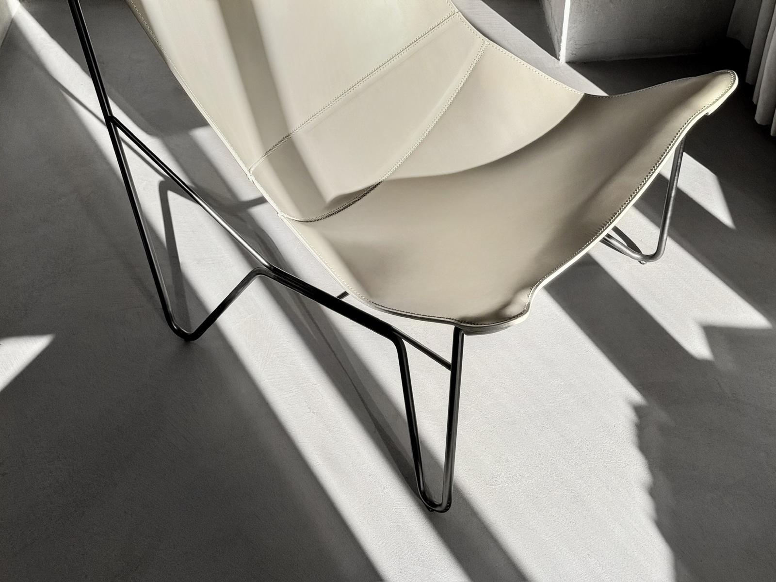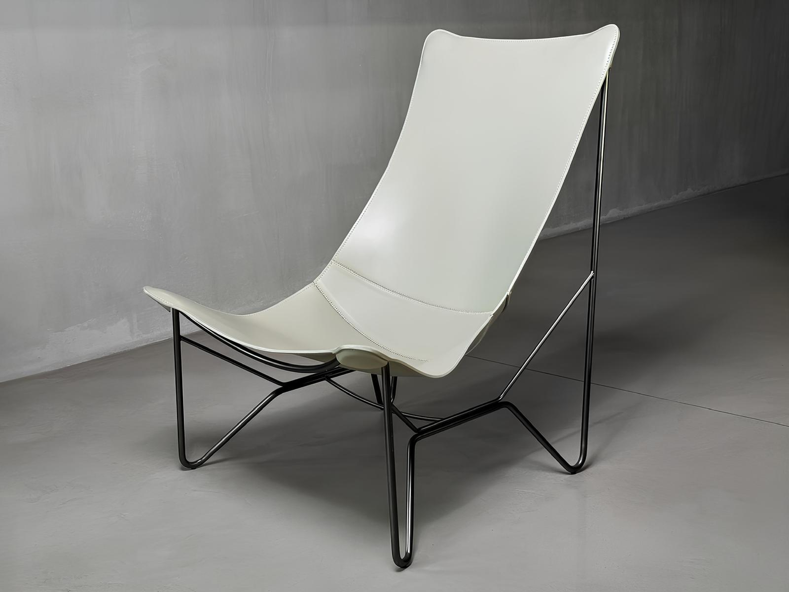 The Hutton-Gwen armchair is a sophisticated reinterpretation of classic design. Set on a bronzed metal frame and upholstered in top-grain leather in an off-white hue, it captivates with a subtle contrast of materials and impeccable craftsmanship. An innovative upholstery attachment system, using specially designed pockets, accentuates its architectural form. It is the essence of contemporary elegance, created for the most discerning interiors.
