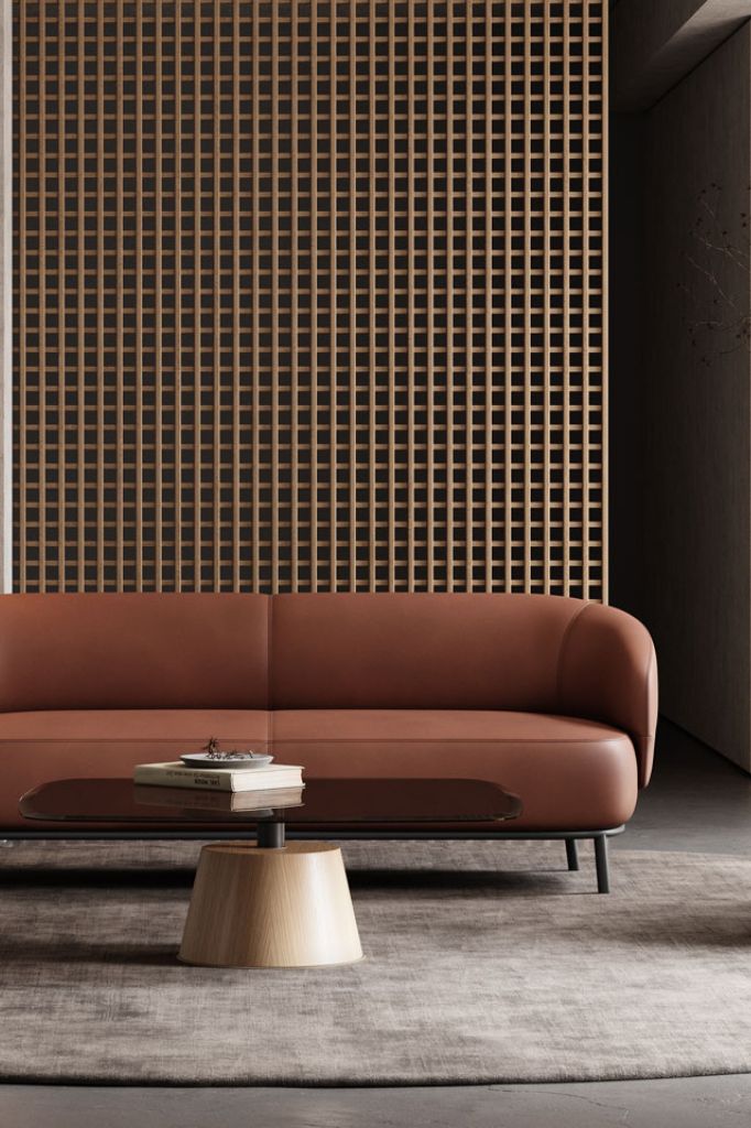 Jermain stars a convex back that elongates to a discreet armrest with a slight open bend for extreme comfort. Also, an elegant opening on the back brings a touch of contemporary style.