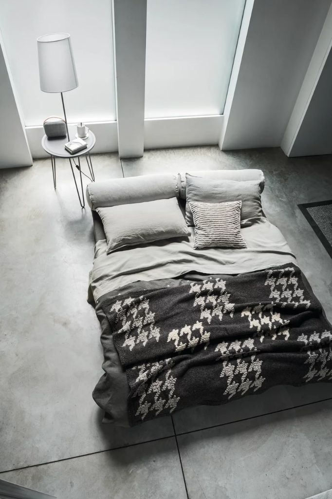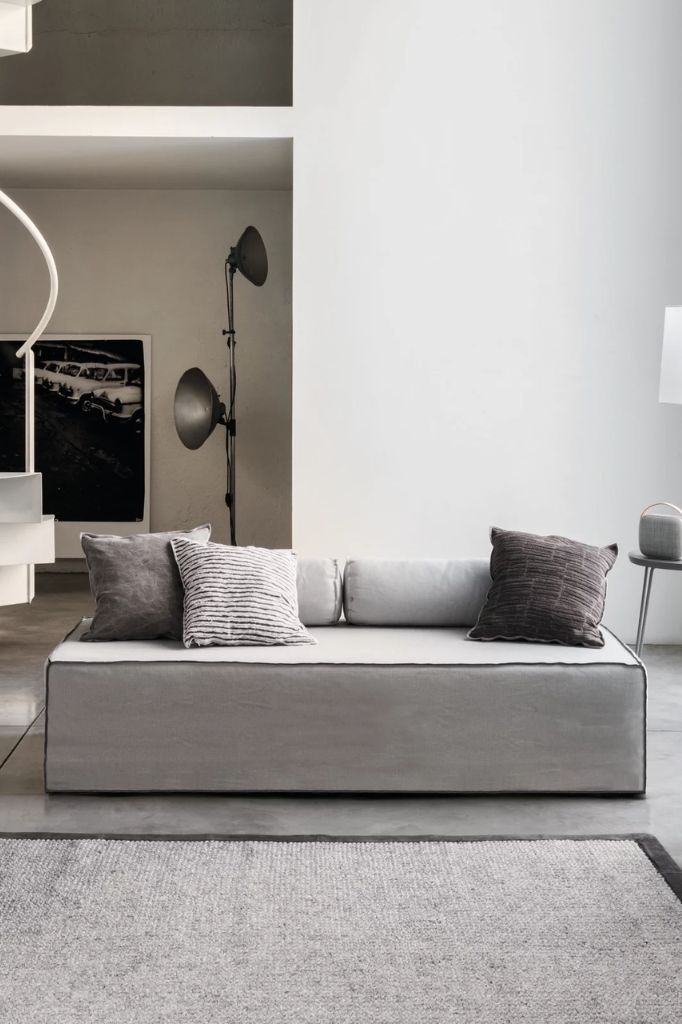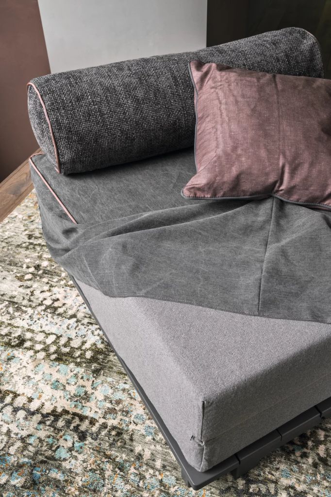 A main feature of Kuba is transformability: the removable slatted base hidden under the foldable mattress slides out in one movement, allowing the pouf to be converted into a sofa, single bed, or double bed.Yelek bed