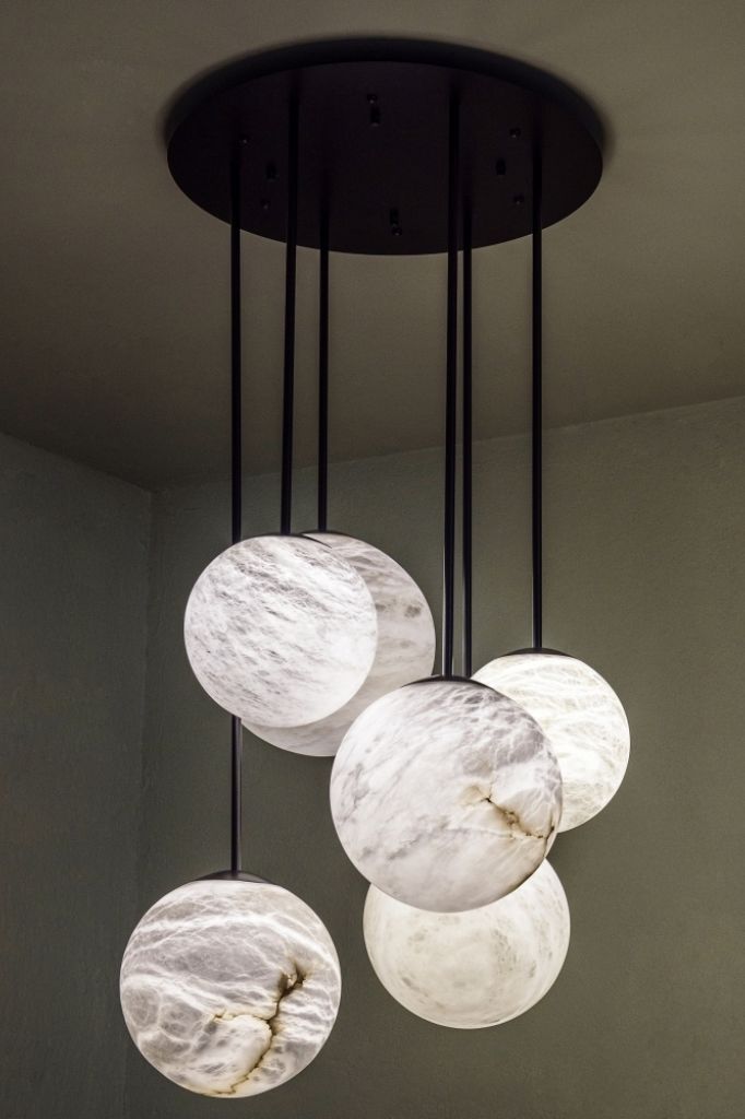 Lampa Moon w oczywisty sposób nawiązuje do przestrzeni astralnej. Wyjątkowe detale półprzezroczystego alabastru tworzą niepowtarzalny efekt świetlny. To unikalny design, który zapewni każdej przestrzeni nowoczesne oświetlenie. Lampa posiada szereg możliwości konfiguracji, pozwalających na wybór koloru konstrukcji, wykończenia podstawy sufitowej oraz rozmiaru.