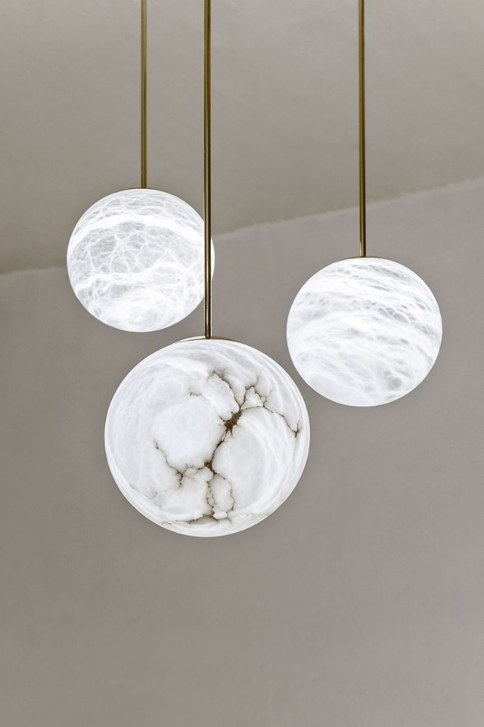 Lampa Moon w oczywisty sposób nawiązuje do przestrzeni astralnej. Wyjątkowe detale półprzezroczystego alabastru tworzą niepowtarzalny efekt świetlny. To unikalny design, który zapewni każdej przestrzeni nowoczesne oświetlenie. Lampa posiada szereg możliwości konfiguracji, pozwalających na wybór koloru konstrukcji, wykończenia podstawy sufitowej oraz rozmiaru.