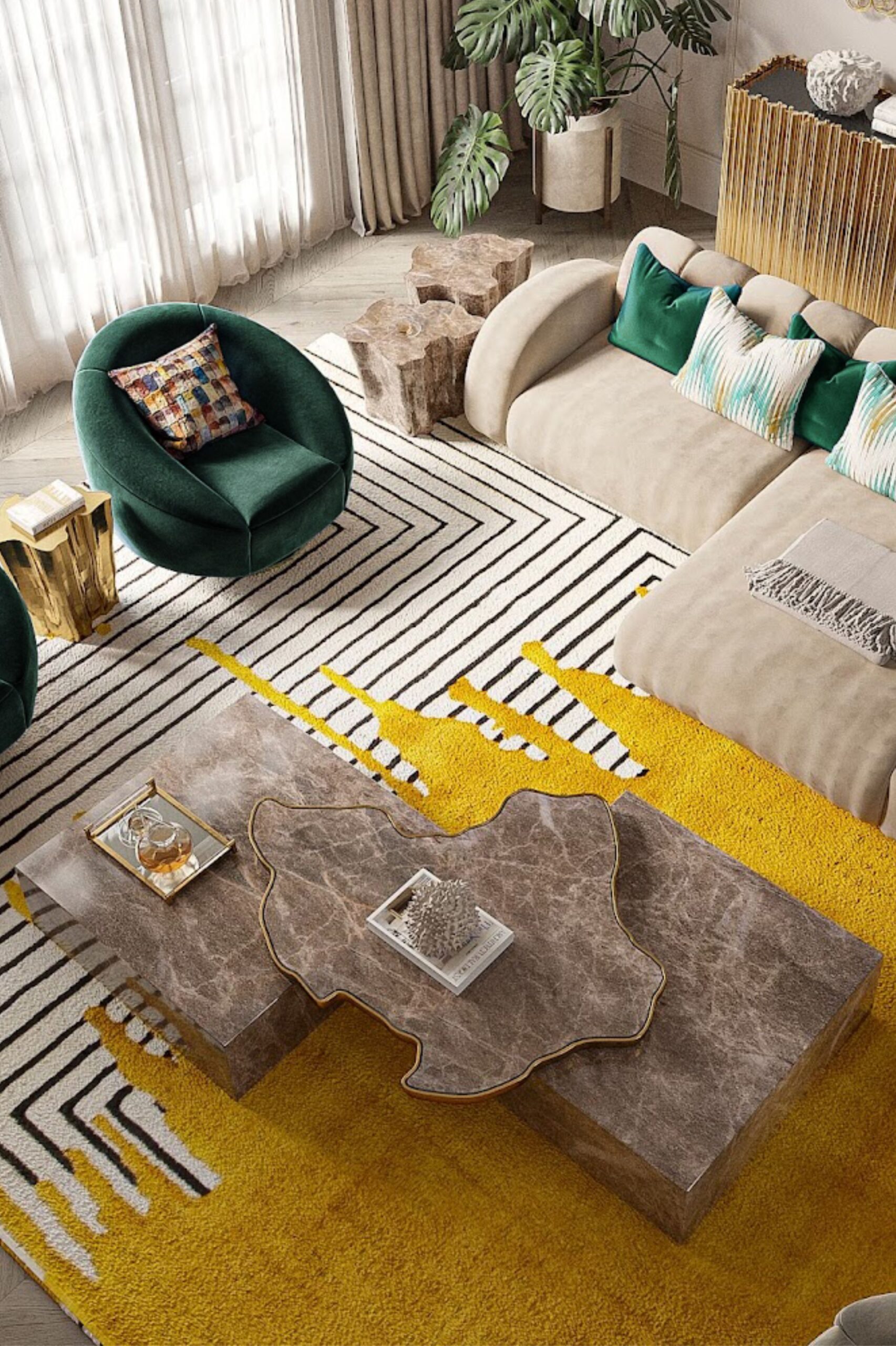 Nowoczesny stół centralny Navarra zachwyca wyjątkowym hiszpańskim ciepłem i najlepszym rzemiosłem. Bogata kolorystyka tła podkreślona grubymi i cienkimi żyłkami przenosi wzrok na blat stolika, oprawionego mosiężną ramą.