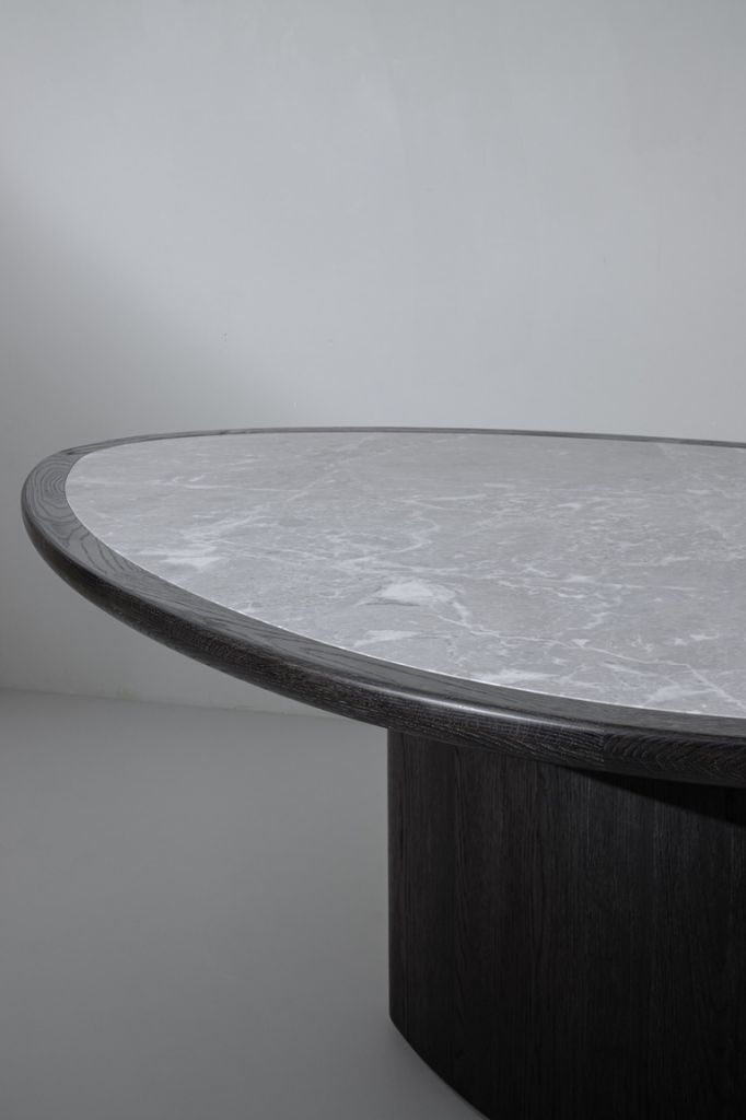 Inspirowana delikatnymi, subtelnymi odcieniami i kształtami tradycyjnej azjatyckiej ceramiki celadon, ORA emanuje cichą, ale niezaprzeczalną elegancją i prezencją. Marmurowy blat w kształcie jaja, w połączeniu z bogatym litym dębem, tworzy uderzające połączenie, które emanuje zarówno ciepłem, jak i wyrafinowaniem. Jego nowoczesny, organiczny kształt bez trudu uzupełnia zarówno współczesne, jak i klasyczne wnętrza. Odłączana podstawka Lazy Susan pozwala na łatwe dzielenie się i serwowanie, może być także używana jako centralny element stołu. Charakterystyczna podstawa z drewna dębowego sprawia, że ORA nie jest zwykłym meblem, a prawdziwym dziełem sztuki.
