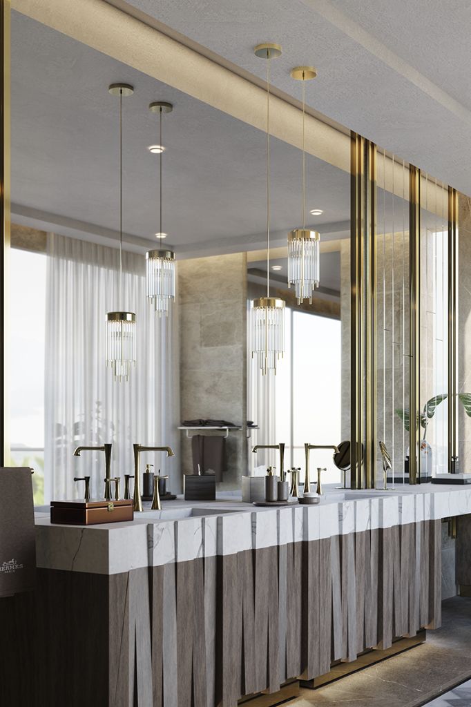 The Pharo Pendant Lamp is a modern lighting solution crafted from high-quality crystal glass and gold-plated brass. It represents the architectural lines of lighthouses by rupturing the darkness. This smaller version of the luxury pendant light is as versatile and stylish as any fixture in its collection and fits in any interior decor.