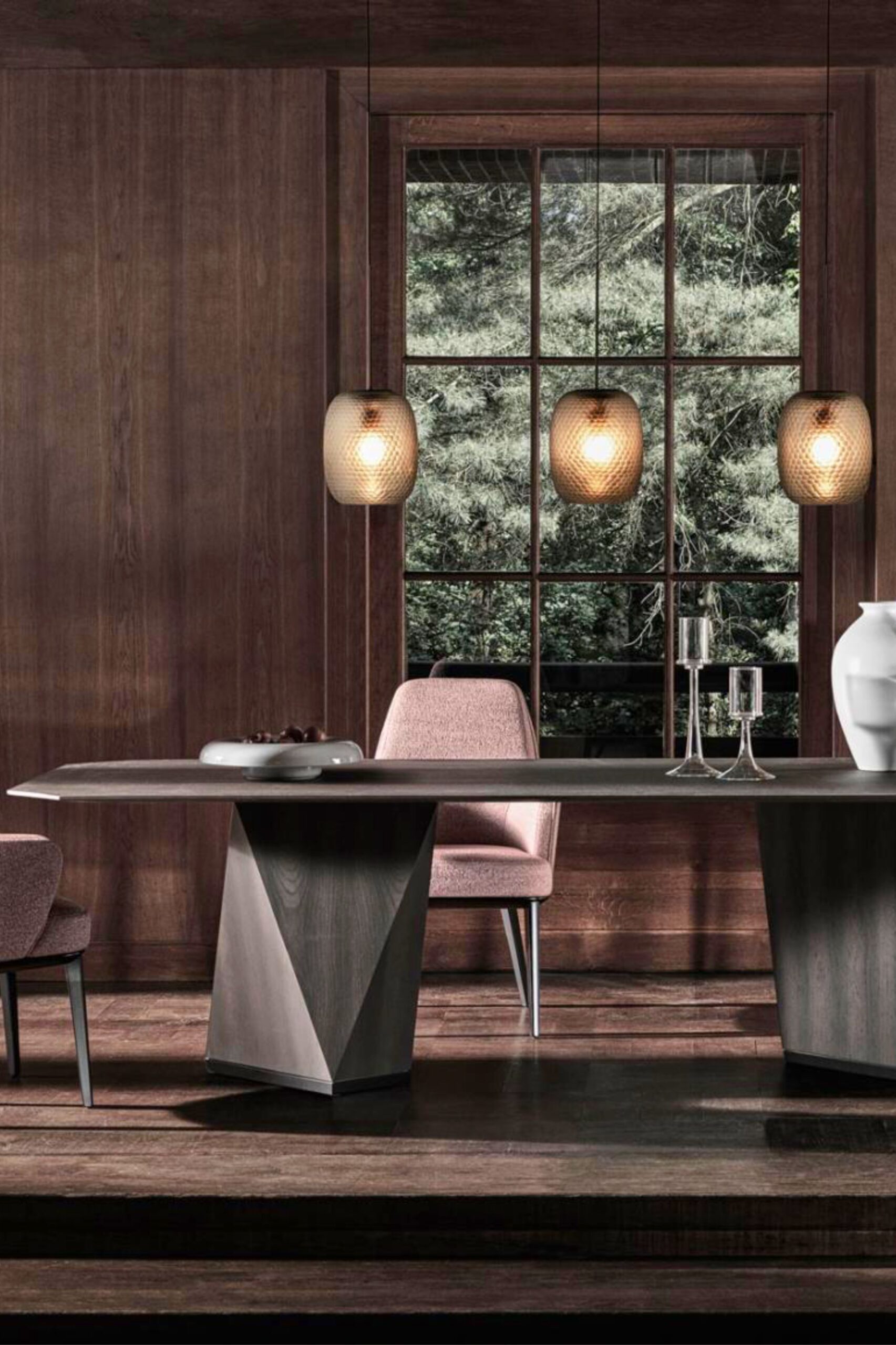 Kolekcja Piano. Rzeźbiarski i jednocześnie lekki charatker stołu współgra ze specjalną płytą mocująca, która umożliwia obracanie dwóch nóg w różnych kierunkach, tym samym wprowadzając stół w ruch.