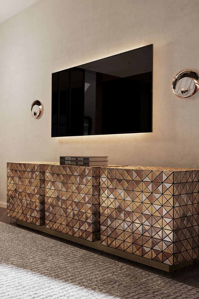 The Quarry Center Table takes exceptional craftsmanship and design to a new level of sophistication. Inspired by raw stone's natural forms and beauty, this coffee table is a celebration of organic elegance.PIXEL ANODIZED SIDEBOARD