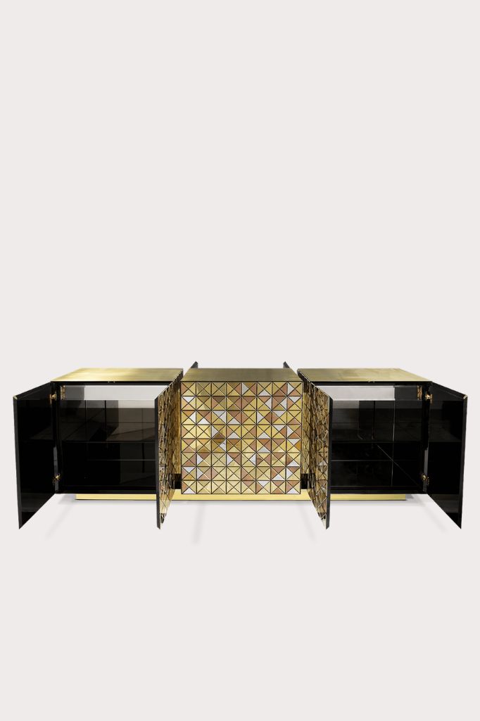 Inspired by the Swan Lake Op. 20, ballet composed by Pyotr Ilyich Tchaikovsky, Odette Modern Sofa. Its sweeping silhouette is accentuated with a polished brass structure and an asymmetric back that offers a sophisticated design and timeless appeal.LAPIAZ SIDEBOARD