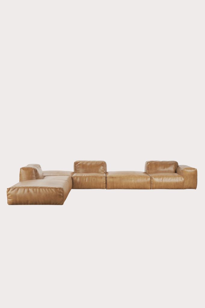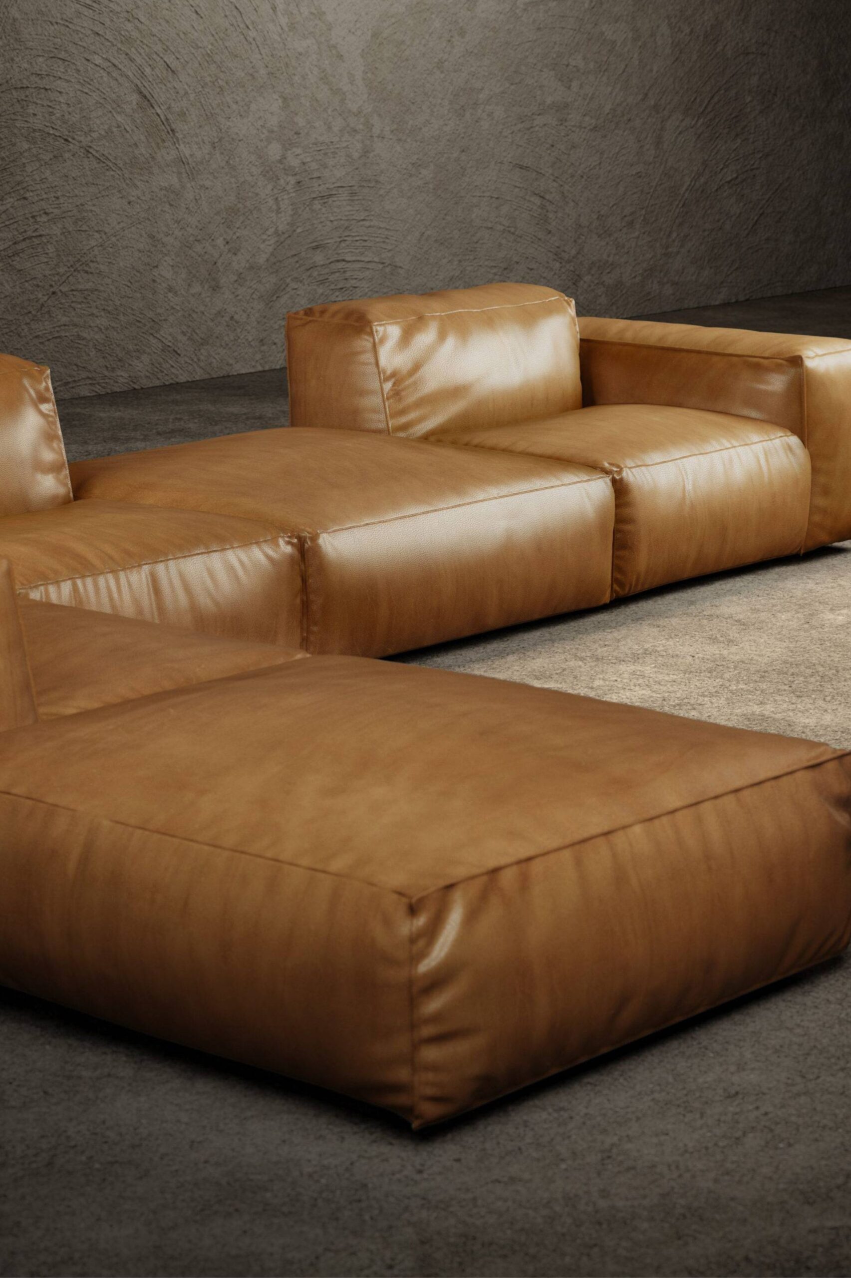 Rencontre moi modular sofa is composed of a wooden shell padded with different densities polyurethane foam with a top layer mixed with memory foam. The sofa is completely covered in fabric or leather.