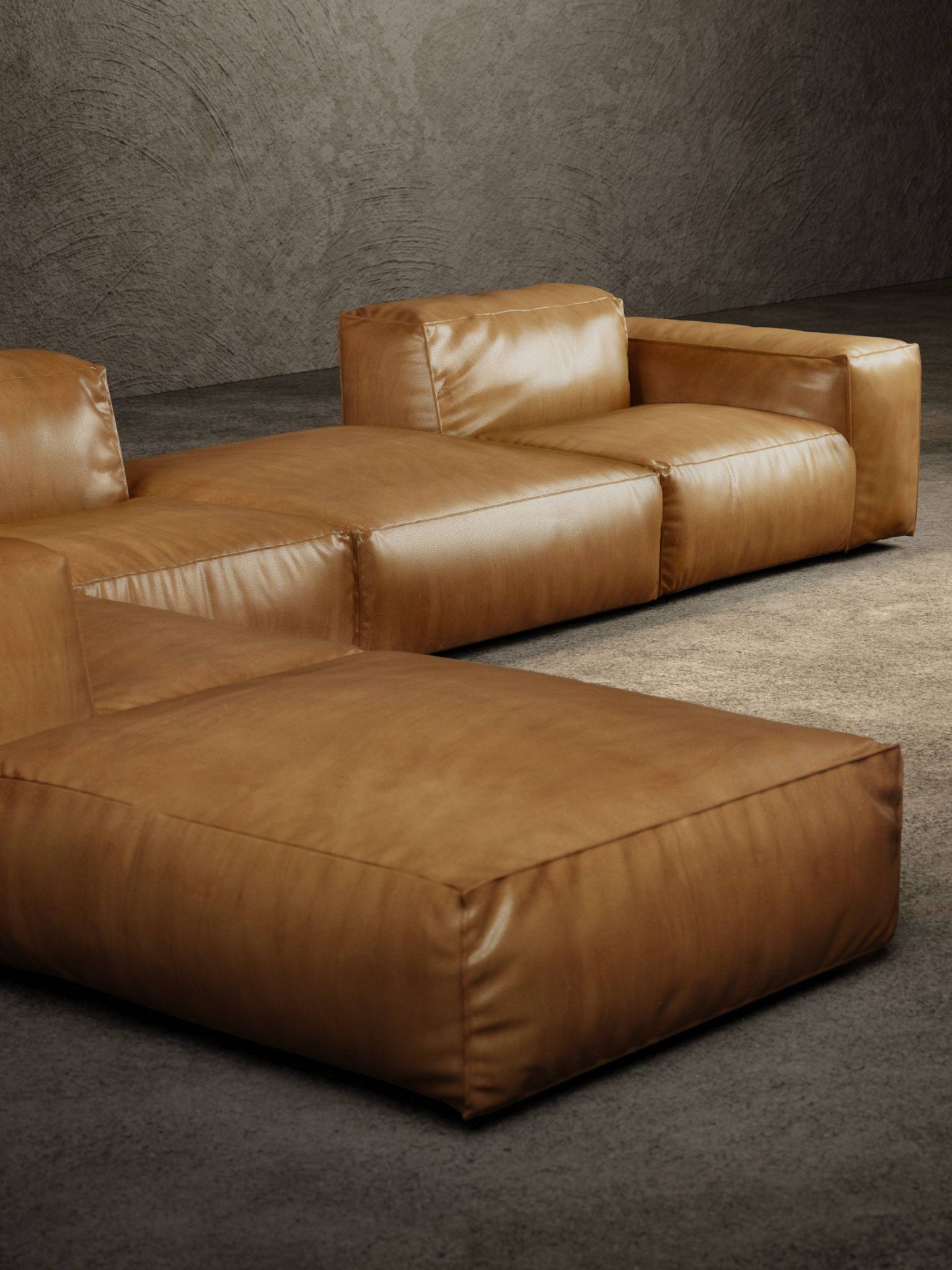 Sofa modułowa Rencontre Moi składa się z drewnianej skorupy wyściełanej pianką poliuretanową o różnej gęstości. Całkowicie pokryta tkaniną lub skórą.