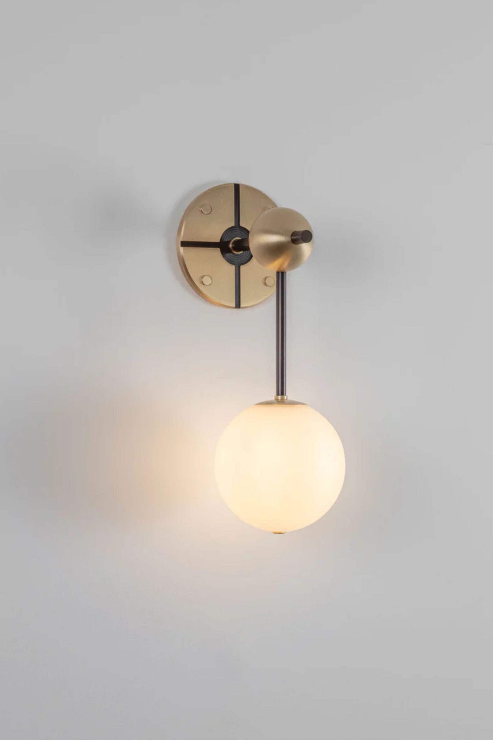 Szklana, matowa kula w towarzystwie mosiężnej kuli stanowi elegancję na miarę nowoczesnych rozwiązań oświetleniowych.