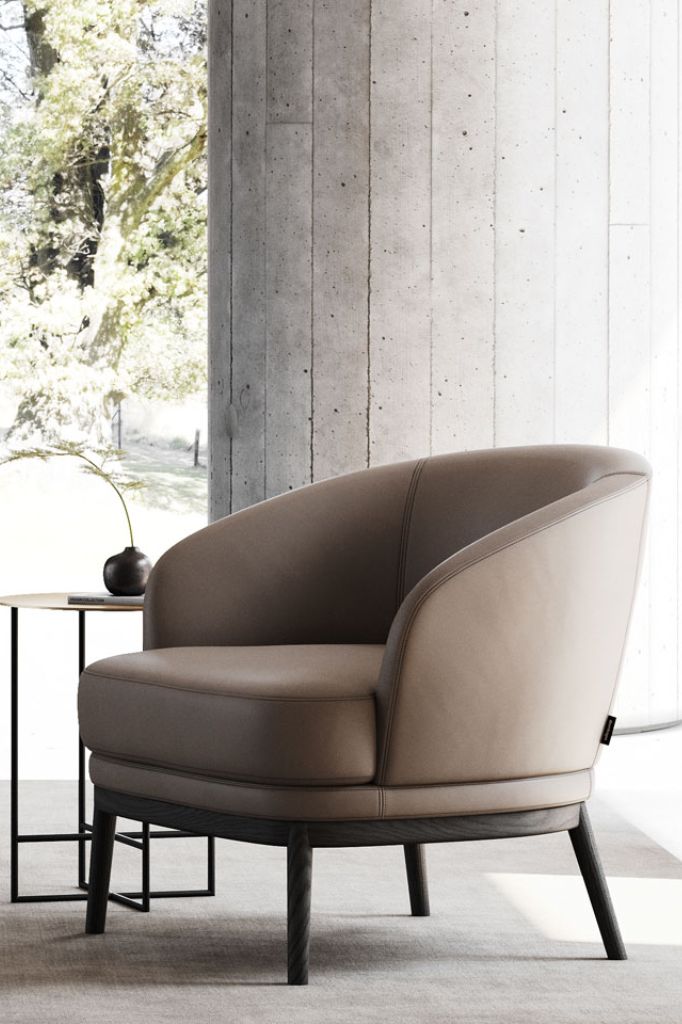 Fotel Ruth to harmonijne połączenie różnorodnych wykończeń. Zapewnia idealną równowagę między elegancją i komfortem.