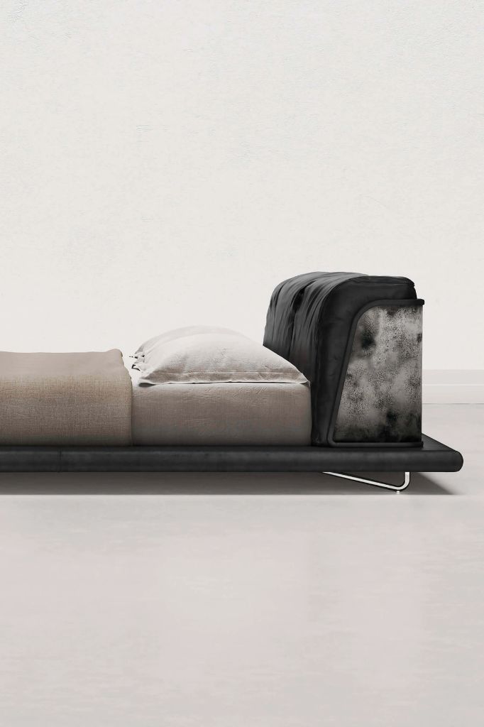 The low platform and slightly protruding edge evoke Japanese-inspired environments, but the leather it鈥檚 made of gives a decidedly rock imprint to this visually striking bed.