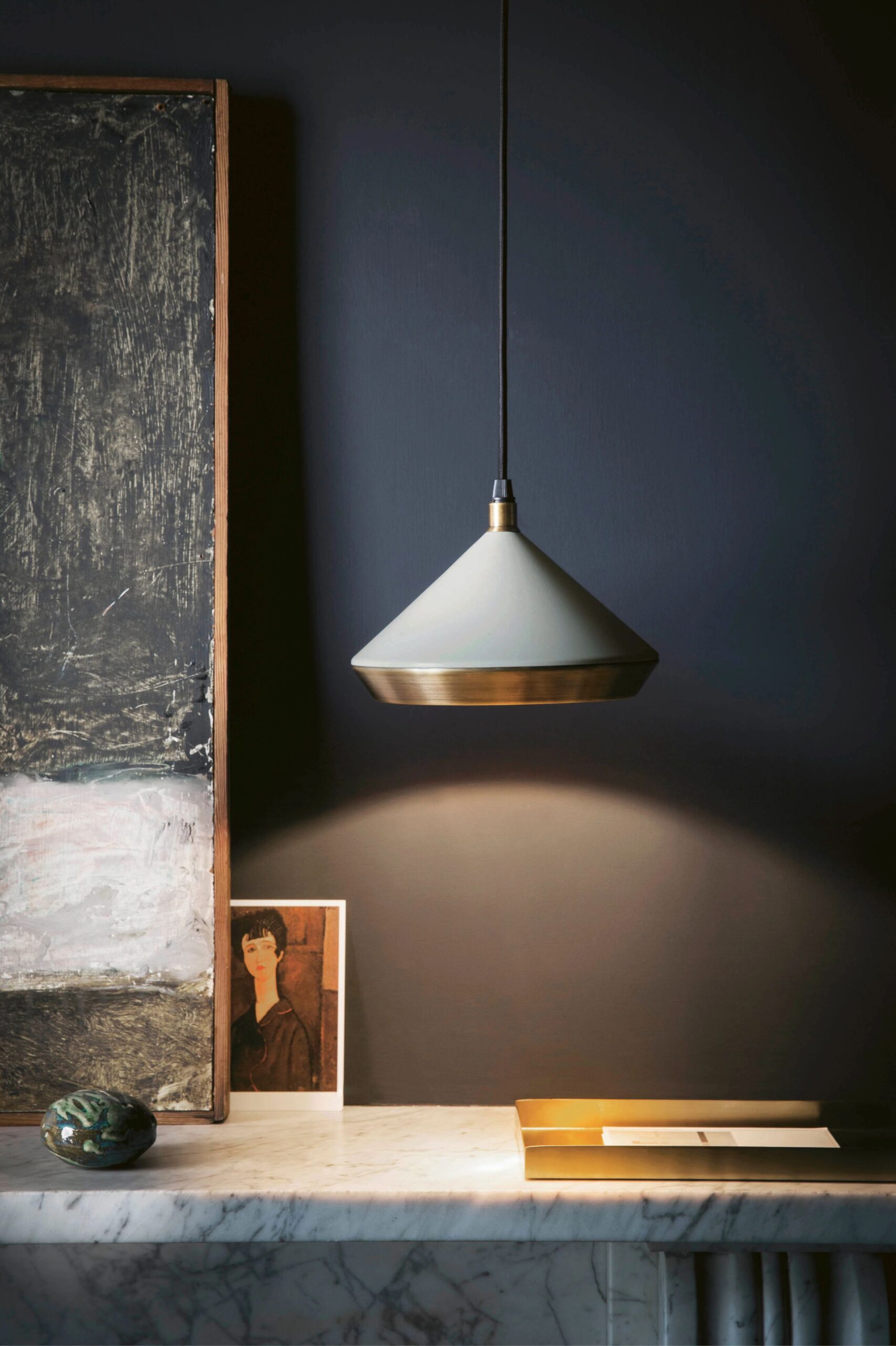 Ponadczasowy design wykonany z mosiądzu i toczonego metalu. Wwykończenie wewnętrznego klosza daje miękkie, ciepłe światło. Regulowana wysokość, zasięg i kąt nachylenia.