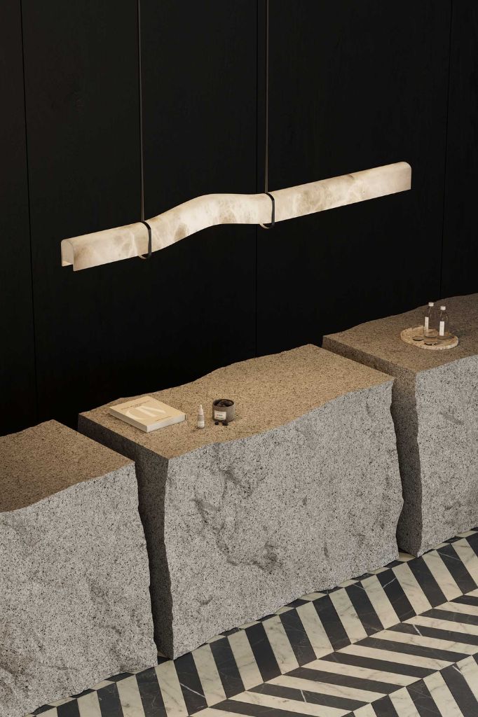 Lampa składa się z dwóch, nakładających się na siebie kamiennych dysków z alabastru, które zapewniają półprzezroczysty efekt i współgrają ze światłem, tworząc zachwycające doznania wizualne.świat bronson: