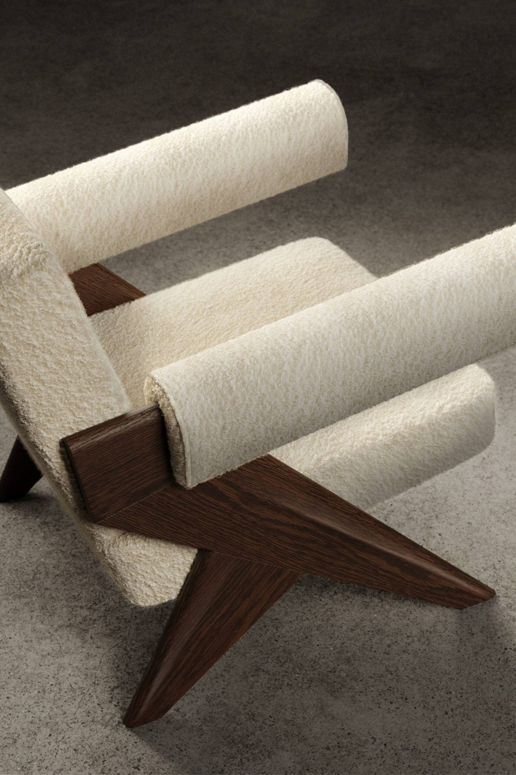 Souvenir armchair is composed of two structural sides in elm wood finished with a matt shellac lacquer.