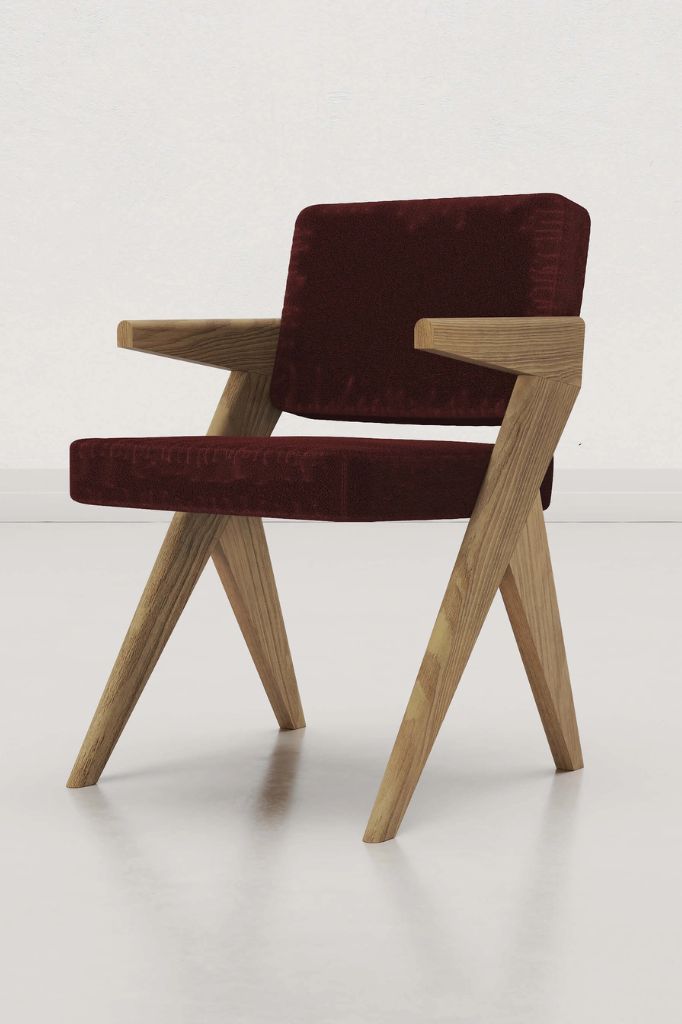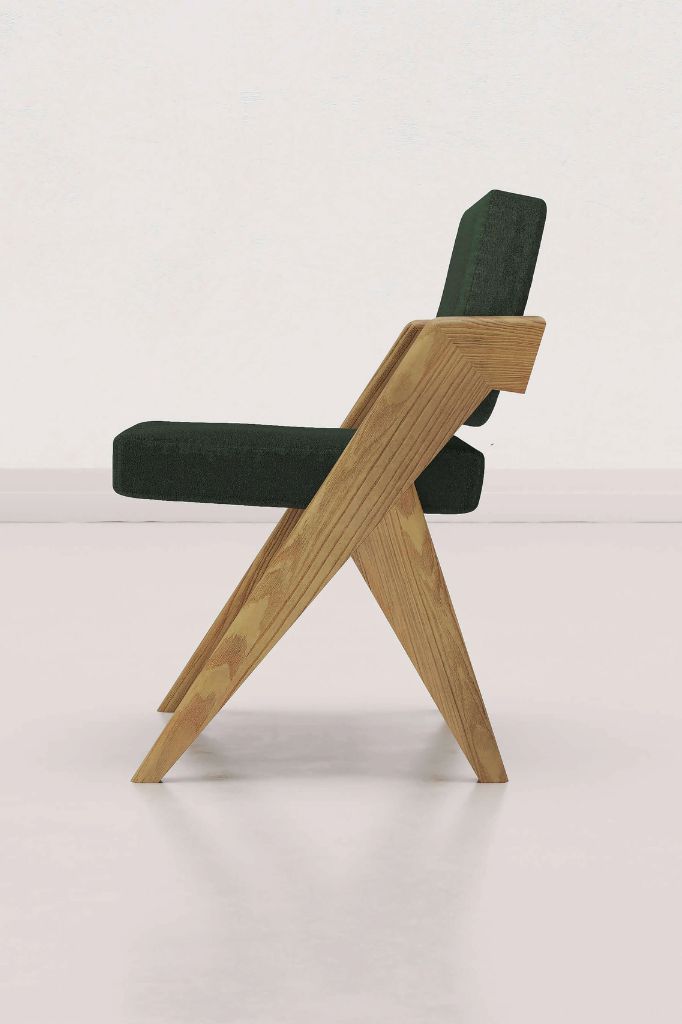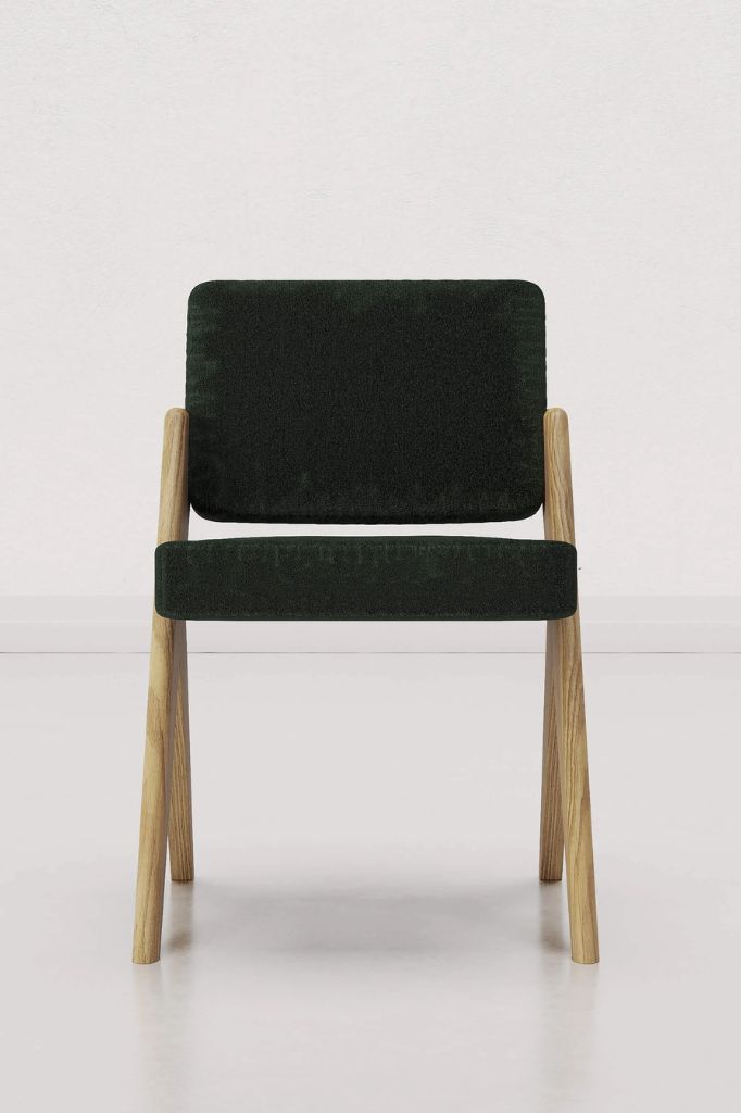 Souvenir chair is composed of two structural sides in elm wood finished with a matt shellac lacquer. The seat and backrest are padded with polyurethane foam and entirely covered in fabric or leather from the giopagani collection.