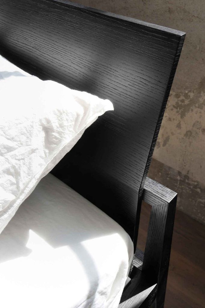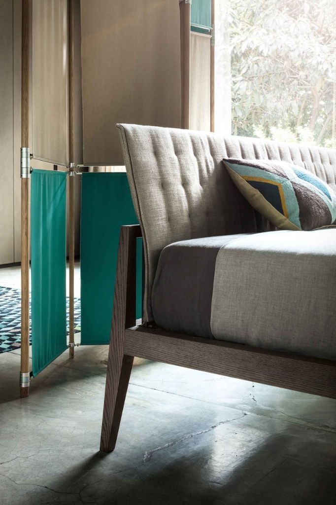 In accordance with Lema traditions, Theo by Studio Kairos combines the warmth and richness of wood, used for the sleek structure, with a clean and bold design. The unique feature of the piece is the inclined headboard, which is also made from wood but has an even more slender profile. It creates a harmonious contrast with the rest of the structure, breaking up the linearity of the design. For a softer finish, the headboard can be provided with a sophisticated finish featuring stitching units.