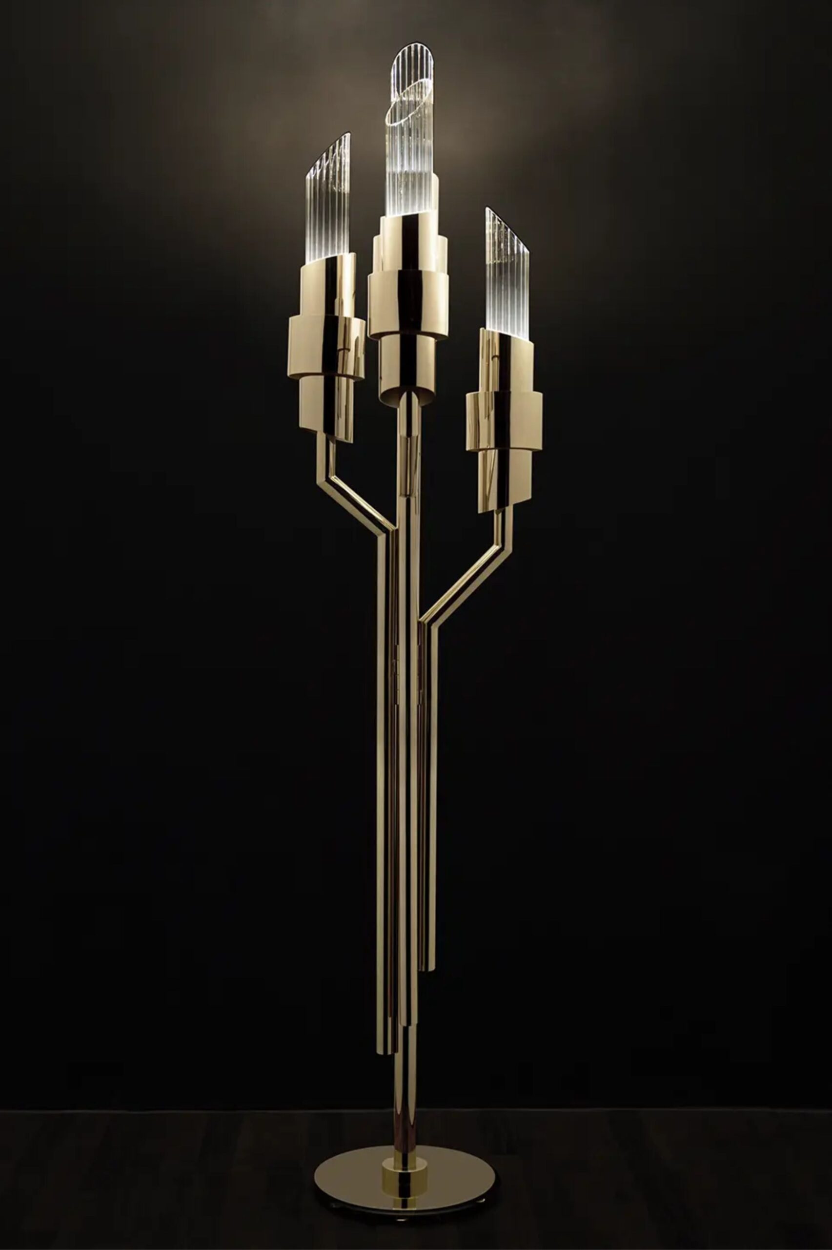 Lampa podłogowa Tycho jest idealnym uzupełnieniem każdego projektu. Prążkowane kryształy zapewniają wyjątkowe załamanie światła, które nadaje ton czarującej i wykwintnej atmosfery.